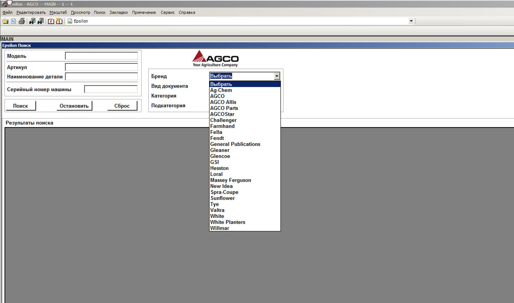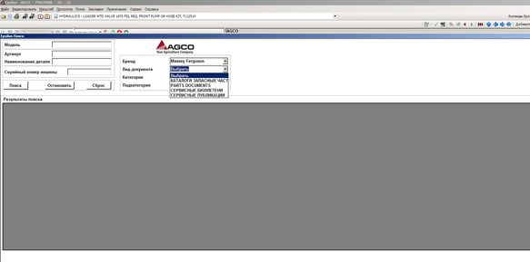Интерфейс каталога AGCO является очень простым и удобным для работы.