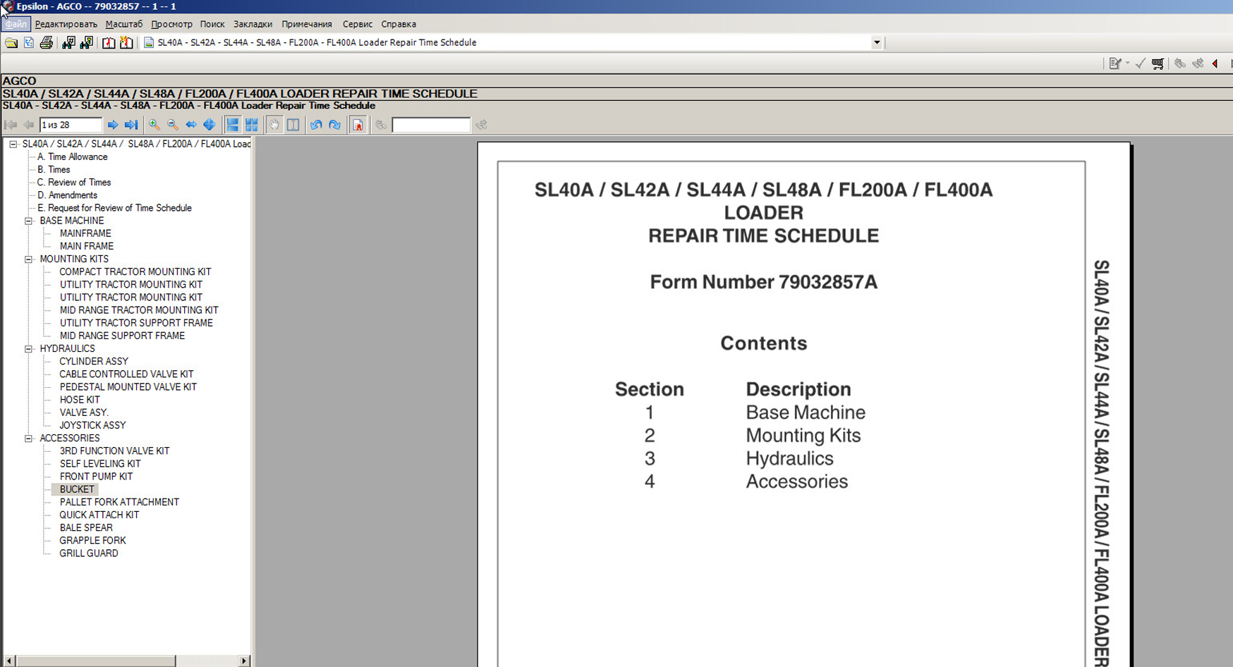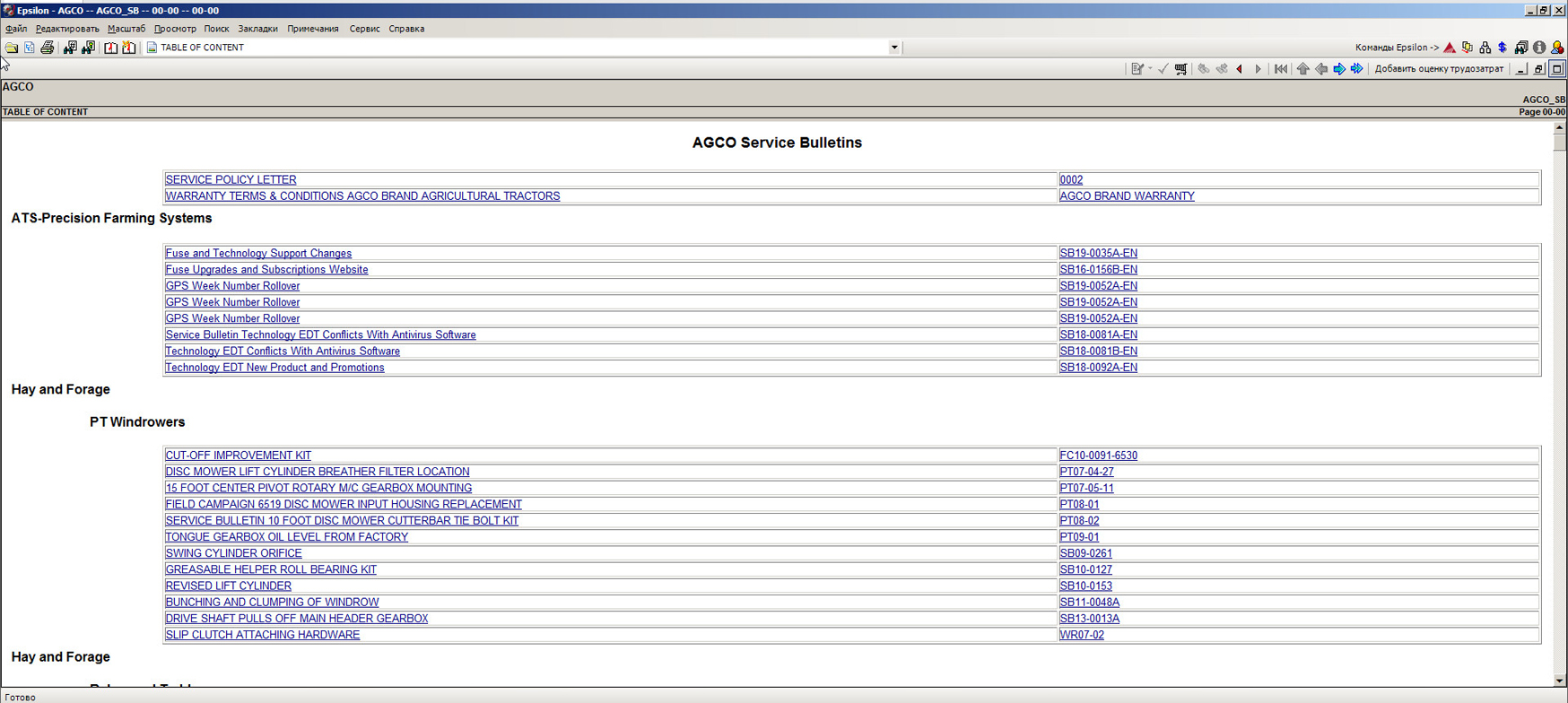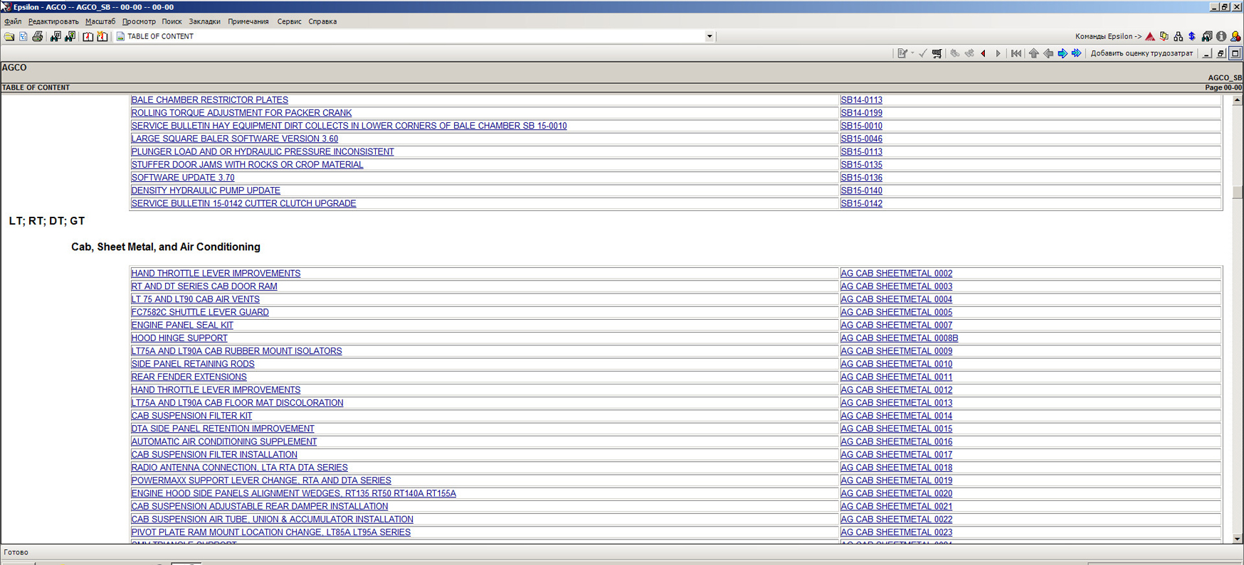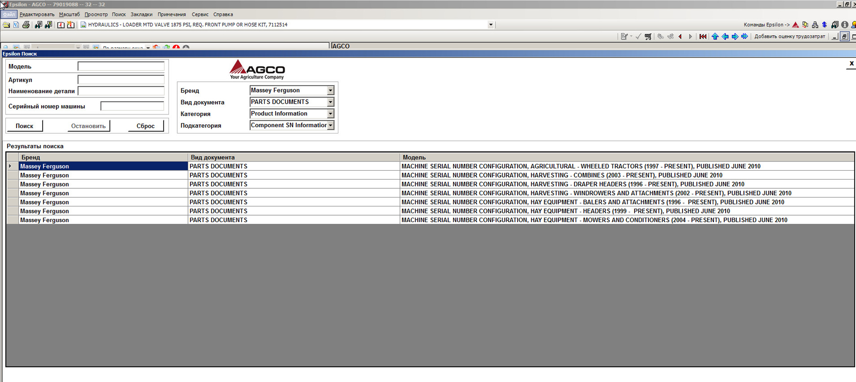 Пример работы с AGCO EPC Spare Part and Service Manuals;