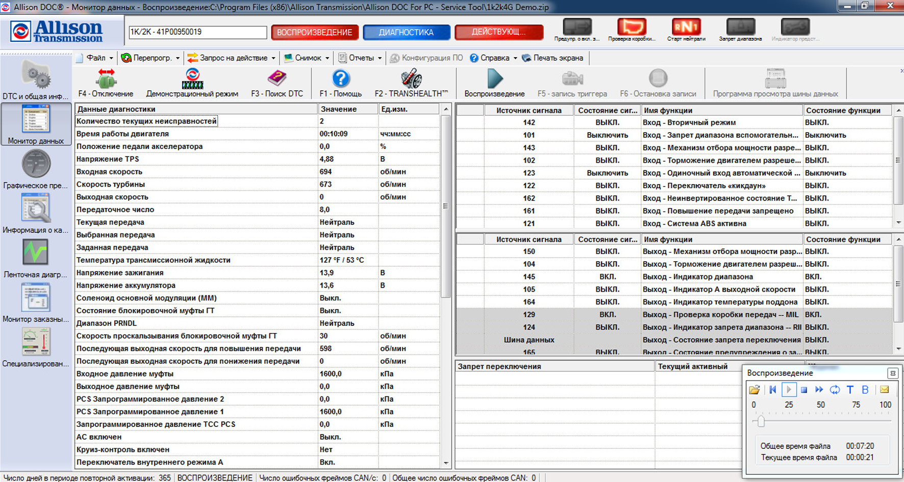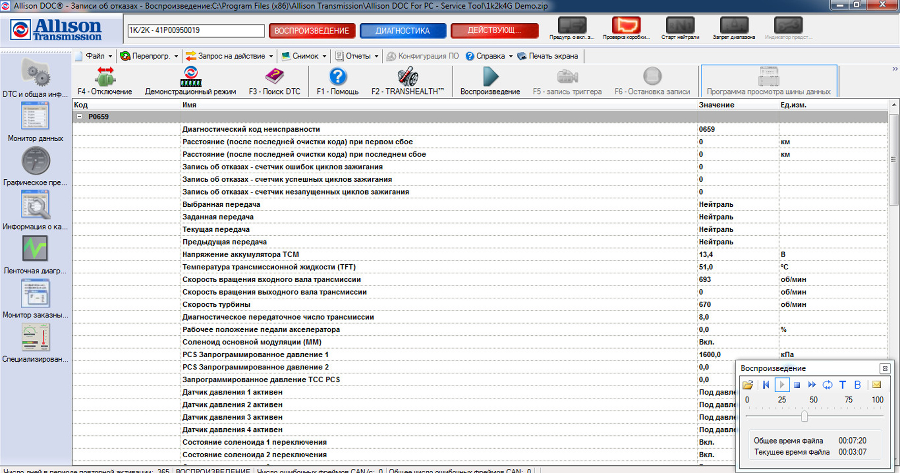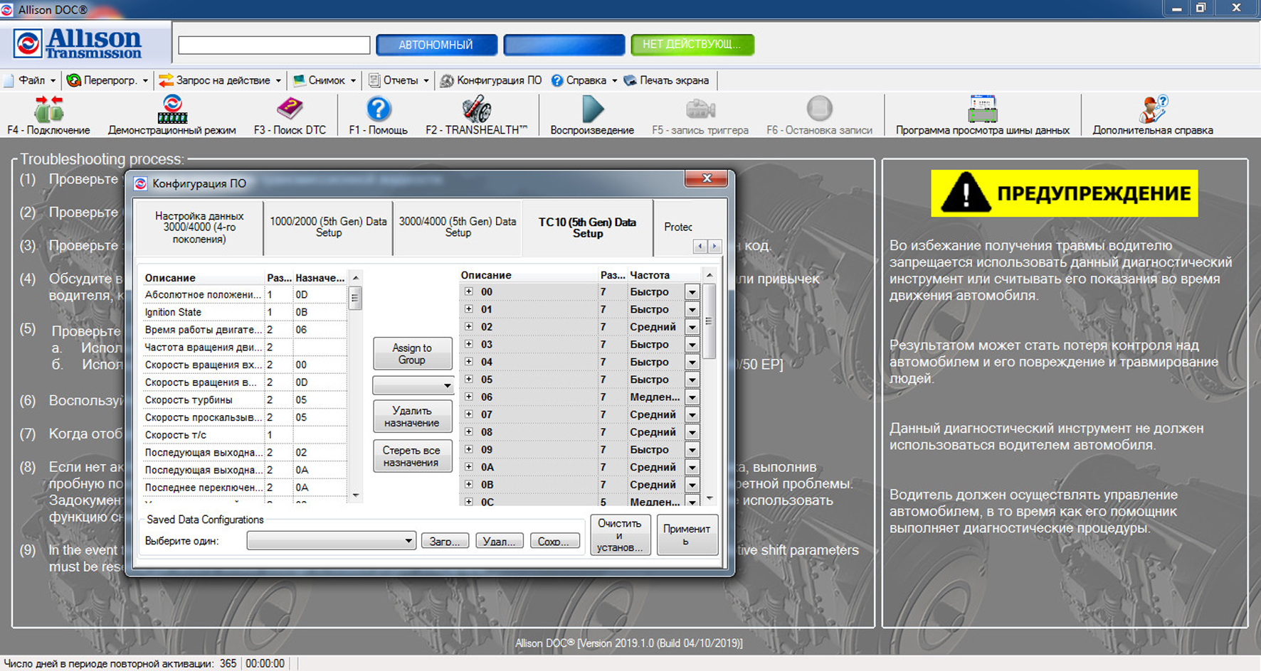 Пример работы диагностической программой Allison DOC 2019 V3.0 GEN5: