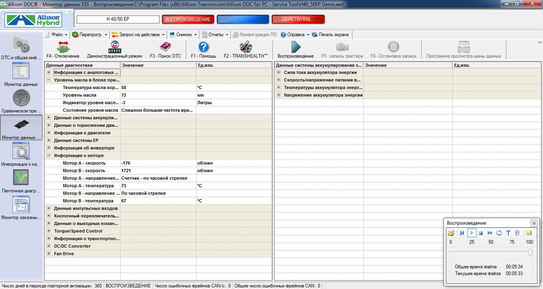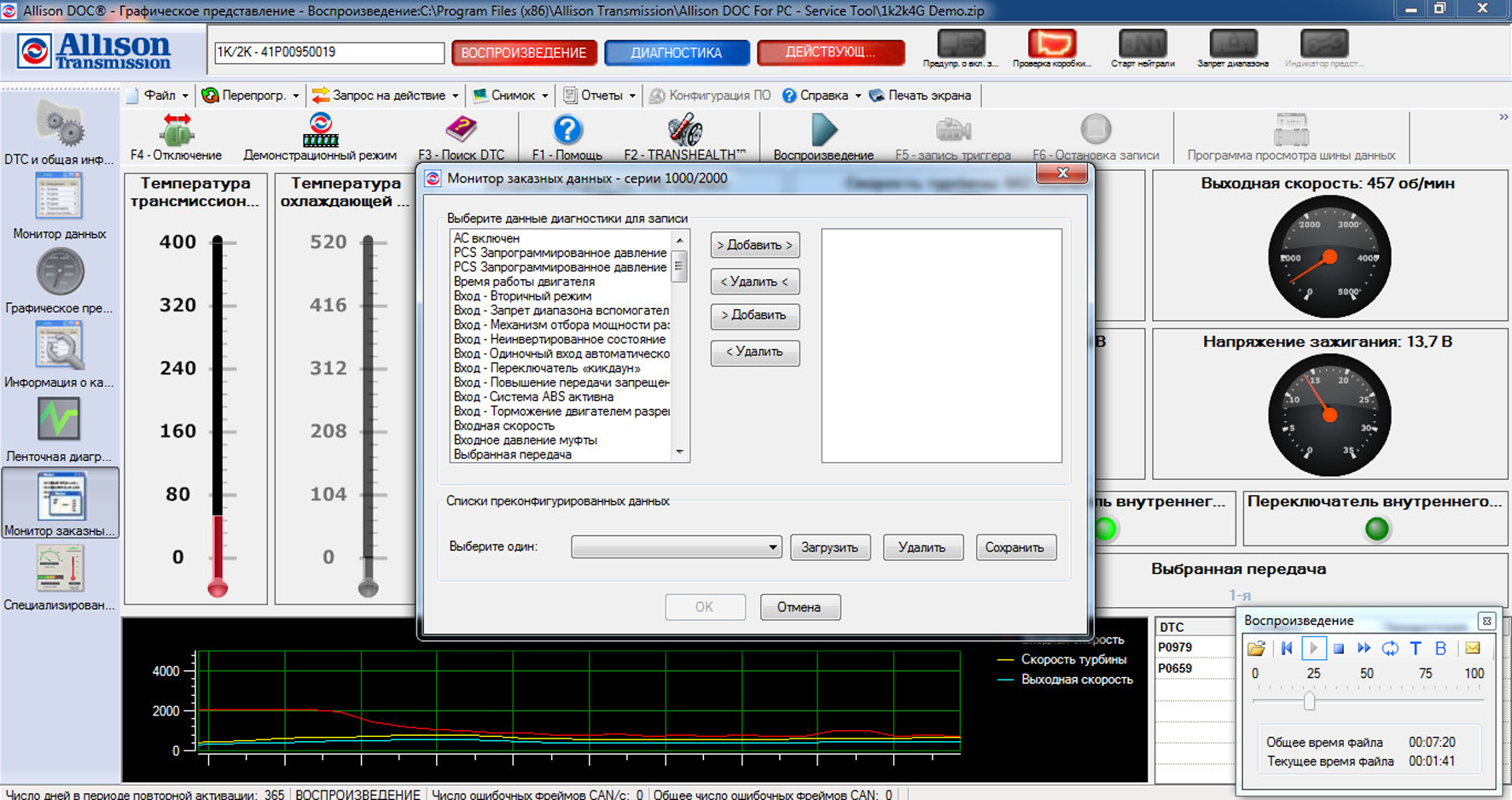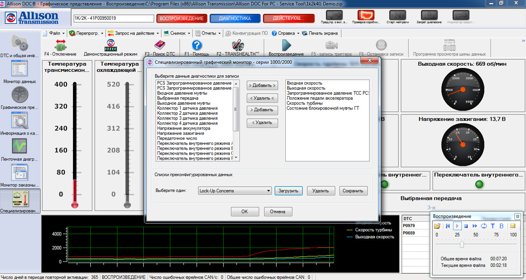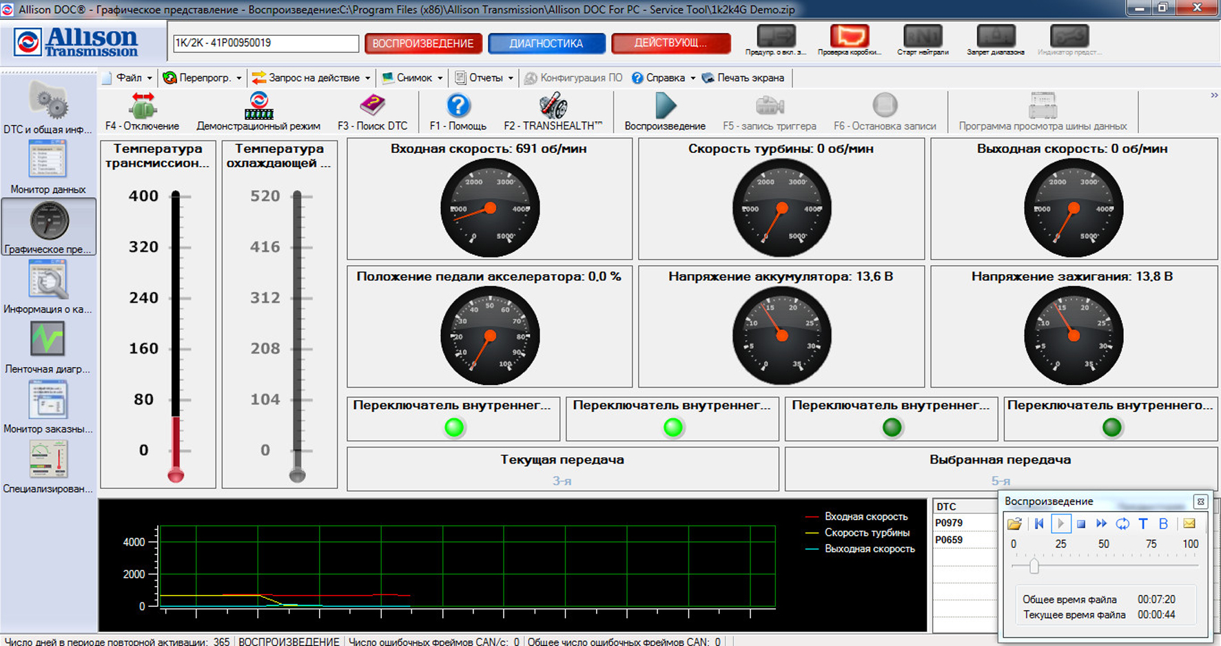 Пример работы диагностической программой Allison DOC 2019 V3.0 GEN5: