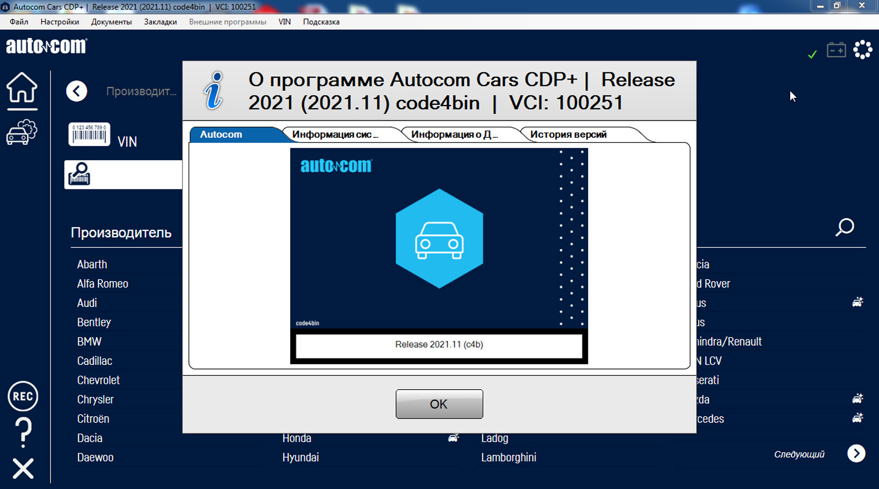 Autocom 2021.10 имеет функциональность на 95% не отличается от оригинального диагностического софта.