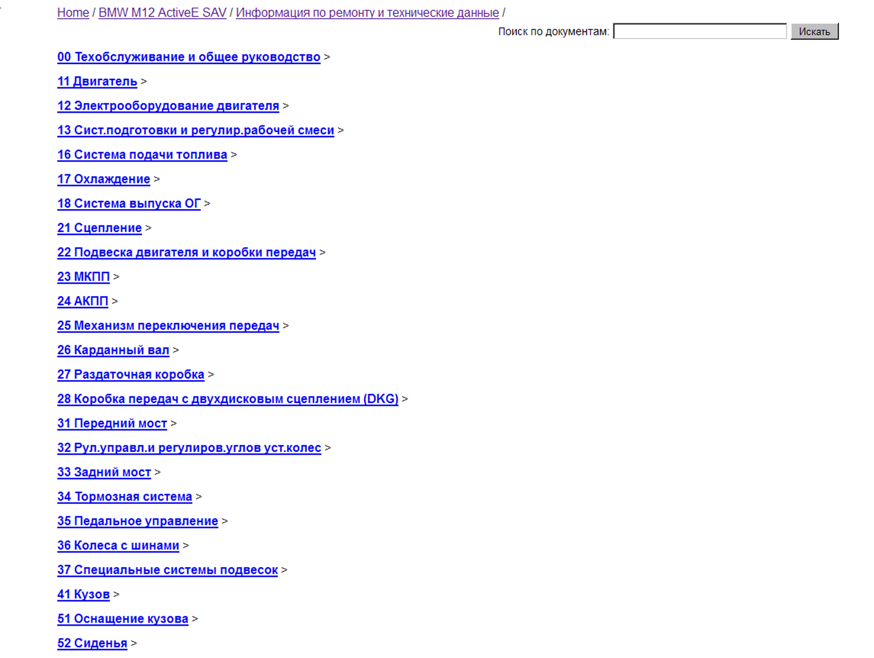 Возможен поиск по видам документов представленных в BMW TIS Online: