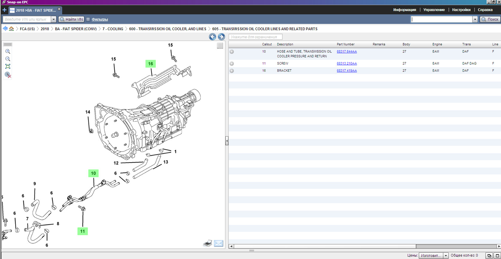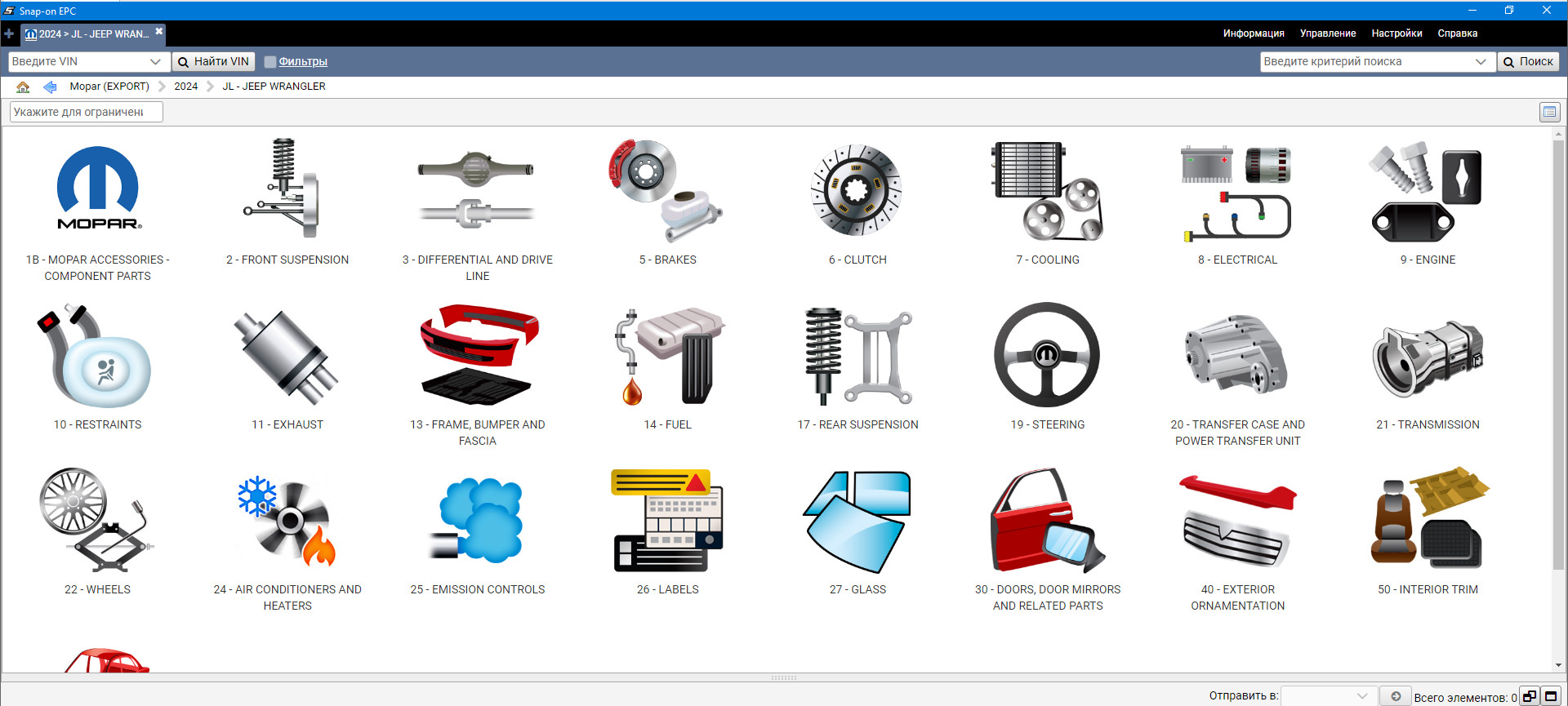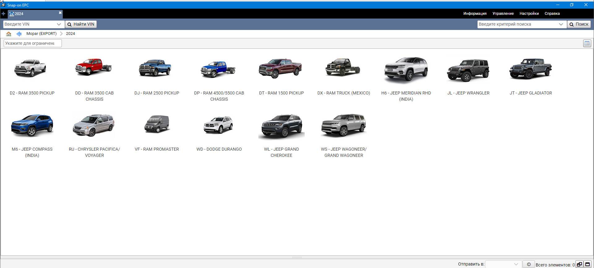 Пример работы с Каталогом Крайслер (Chrysler FCA):