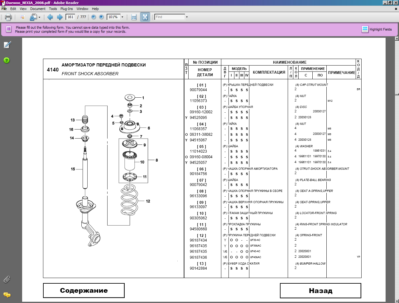 Каталог запасных частей Daewoo Nexia и Matiz и эксплуатационных материалов предоставляет информацию о запасных частях для технического обслуживания автомобиля "НЕКСИЯ, МАТИЗ", производства компании "УзДЭУ авто".