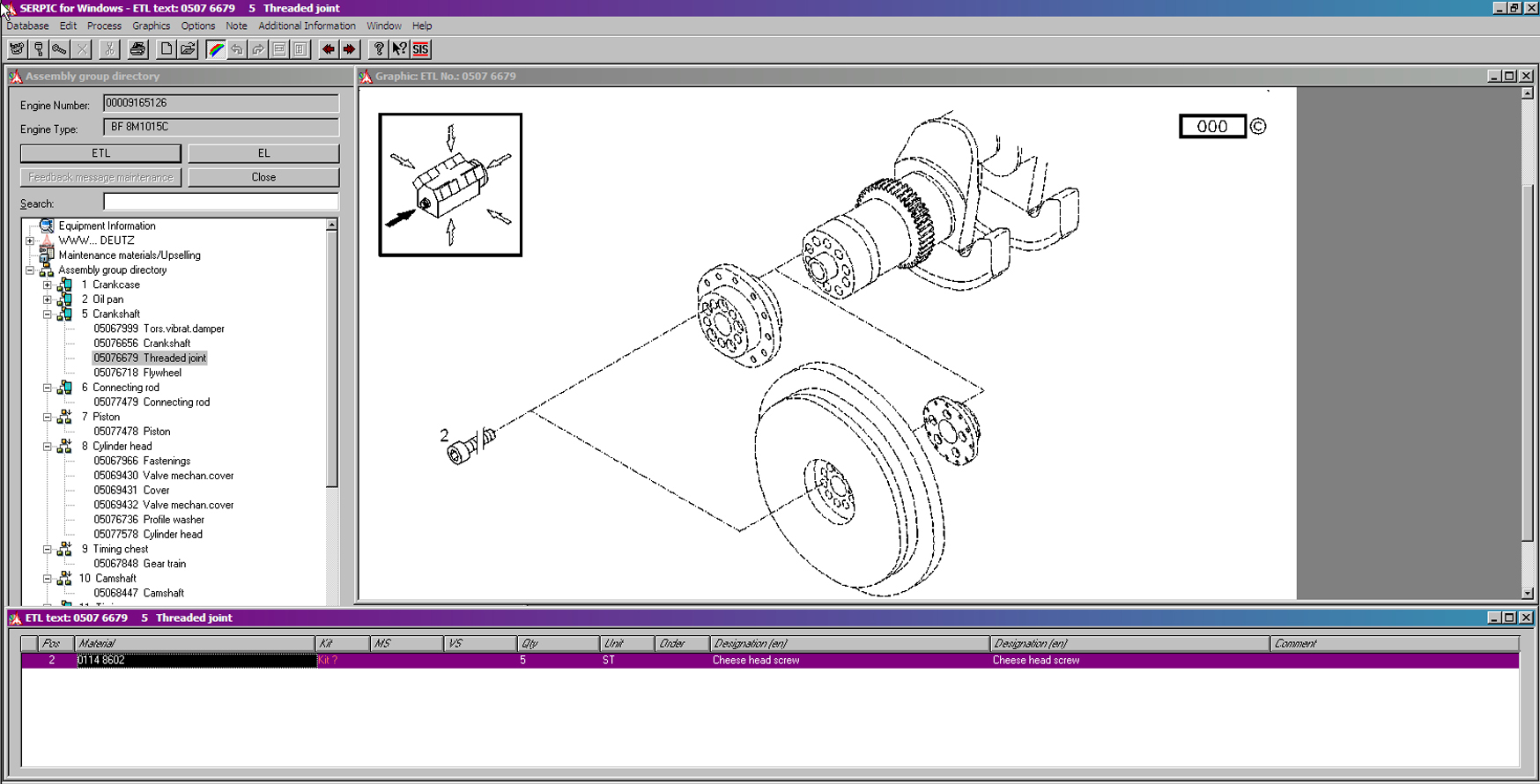 Каталог зачастей DEUTZ SERPIC (SERvice Parts Identification by Computer) содержит каталог DEUTZ двигателей, широко применяющихся в судостроительной, сельскохозяйственной, дорожной, строительной и специальной технике.