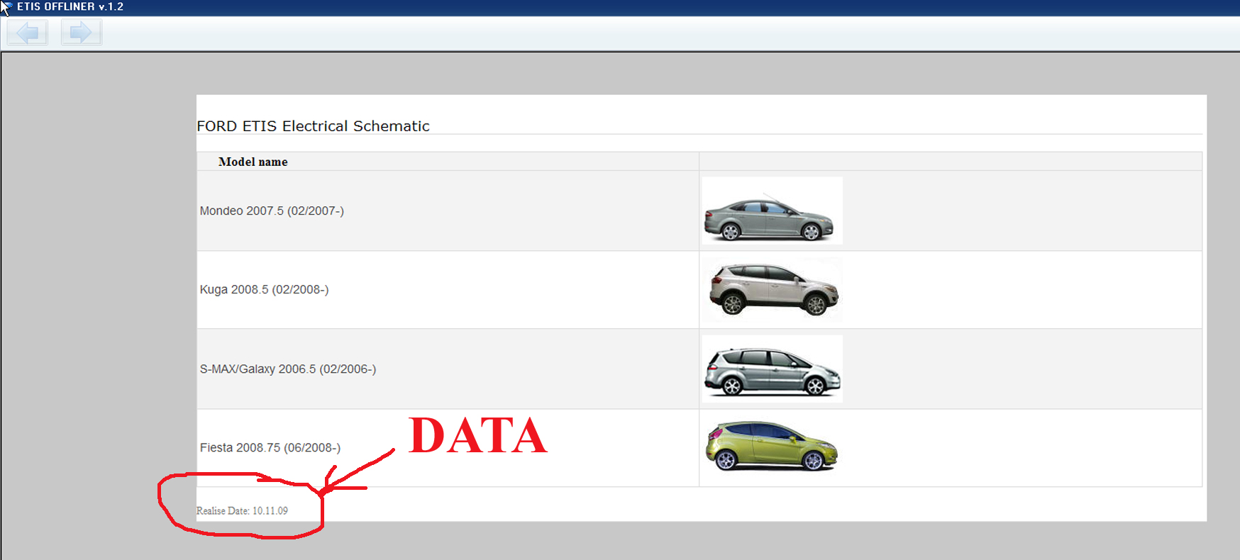 Дата обновления каталога Ford ETIS - с 2006 по 11-2009 года
