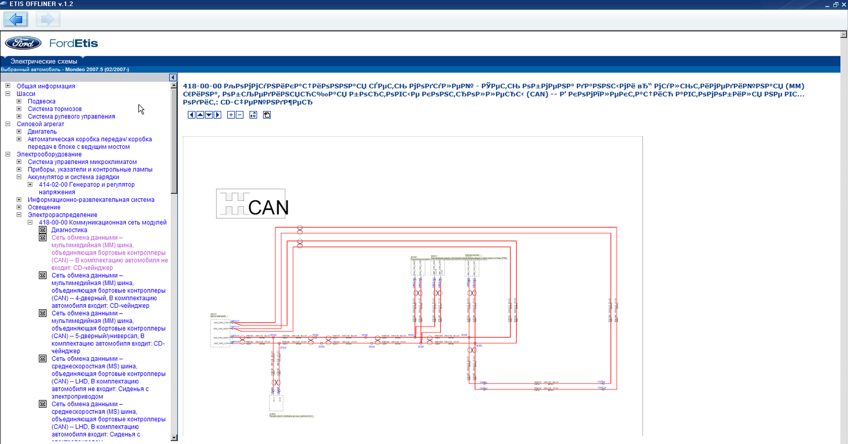Каталоге Ford ETIS присутствуют электросхемы.