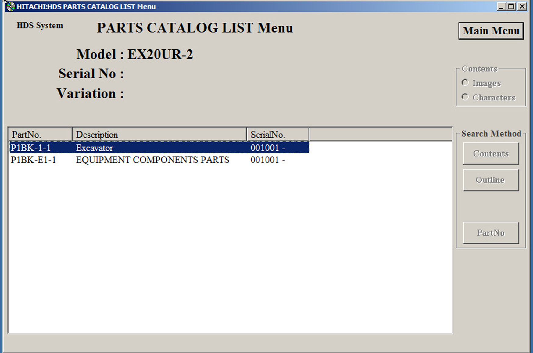 После установки каталога Hitachi Excavator Small пользователь получает доступ к каталожным номерам и технической информации,