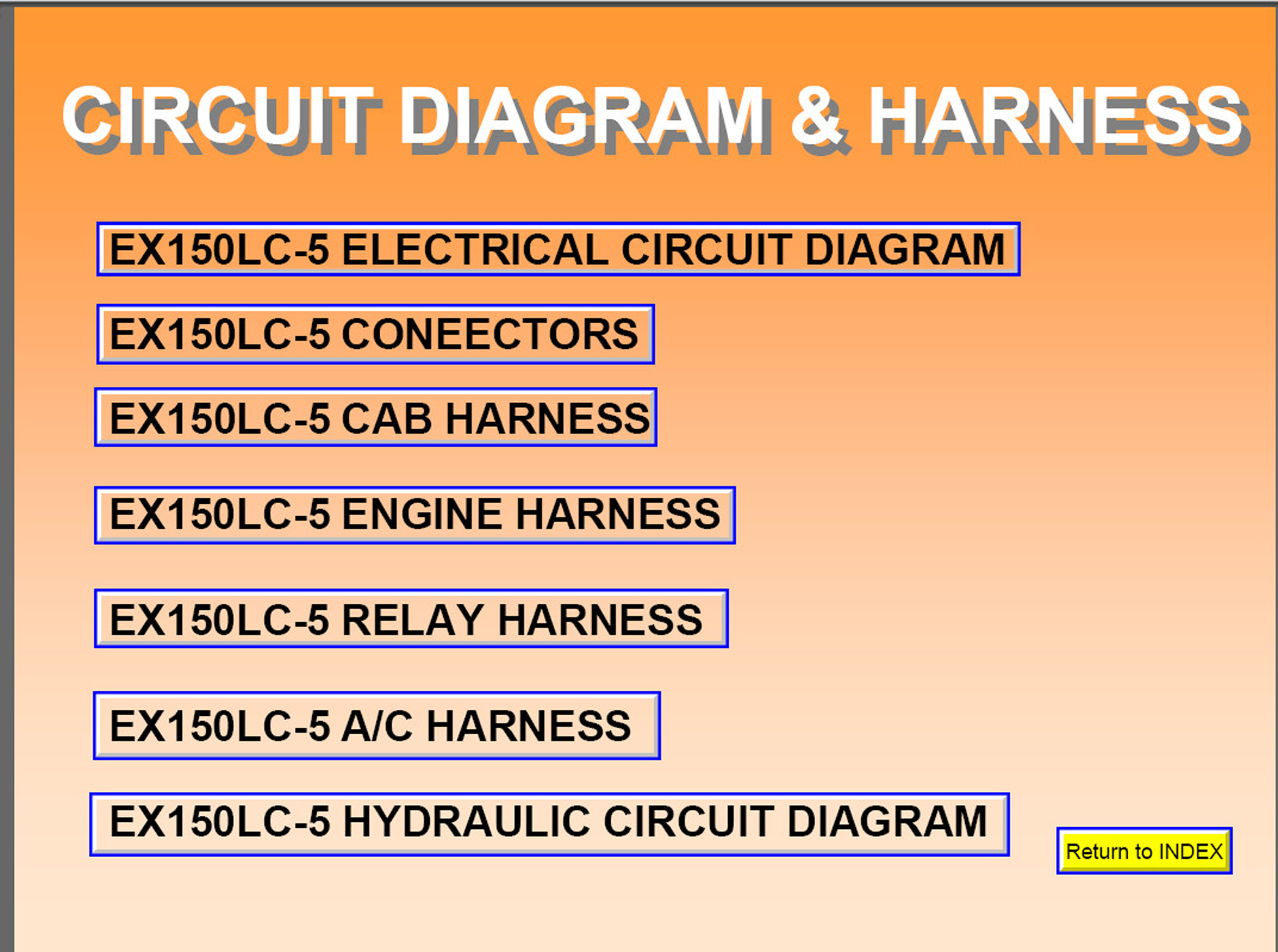 EX110M-5, EX120, EX120-2, EX120-3, EX120-3C, EX120-5:Japan, EX120-5:Overseas, EX120-5E:Japan, EX120-5HG:Japan, EX120-5LV:Japan, EX120-5X:Japan, EX120-5Z:Japan, EX120K-2, EX120K-3, EX120SS-5:Japan, EX125WD-5, EX130H-5:Japan, EX130H-5:Overseas, EX130K-5:Japan, EX135UR, EX135UR-5, EX135US-5, EX135USR, EX135USRK, EX135US-5, EX150, EX150LC-5, EX160LC-5, EX160WD, EX200, EX200-2, EX200-3, EX200-3C, EX200-3E, EX200-5:Japan, EX200-5:Overseas, EX200-5E, EX200-5HG, EX200-5LV, EX200-5X, EX200-5Z, EX200H-3, EX200K, EX200K-2, EX200K-3, EX200LX, EX200LC-2, EX200LC-3, EX200LC-3C, EX200LC-5, EX200LC-5E, EX200LC-5HG, EX200LC-5X, EX200LC-5Z, EX200LCH-3, EX200LCK, EX200LCK-2, EX200LCK-3, EX200LCSS-5, EX200SS, EX210H-5, EX210K, EX210LCH-5, EX210LCK-5, EX220, EX220-2, EX220-3, EX220-5, EX220LC, EX220LC-2, EX220LC-3, EX220LC-5, EX225USR, EX225USRK, EX225USRLC, EX225USRLCK, EX230H-5, EX230K-5, EX230LC-5, EX230LCH-5, EX230LCK-5, EX270, EX270-5, EX270LX, EX270LC-5, EX280H-5, EX280LCH-5, EX300, EX300-2, EX300-3, EX300-3C, EX300-5, EX300H, EX300H-2, EX300H-3, EX300LC, EX300LC-2, EX300LC-3, EX300LC-3C, EX300LC-5, EX300LCH, EX300LCH-2, EX300LCH-3, EX310H-3C, EX310LCH-3C, EX310LC-5, EX345USR, EX345USRLC, EX350H-5, EX350K-5, EX350LCH-5, EX350LCK-5, EX370-5, EX370HD-5, EX385USR