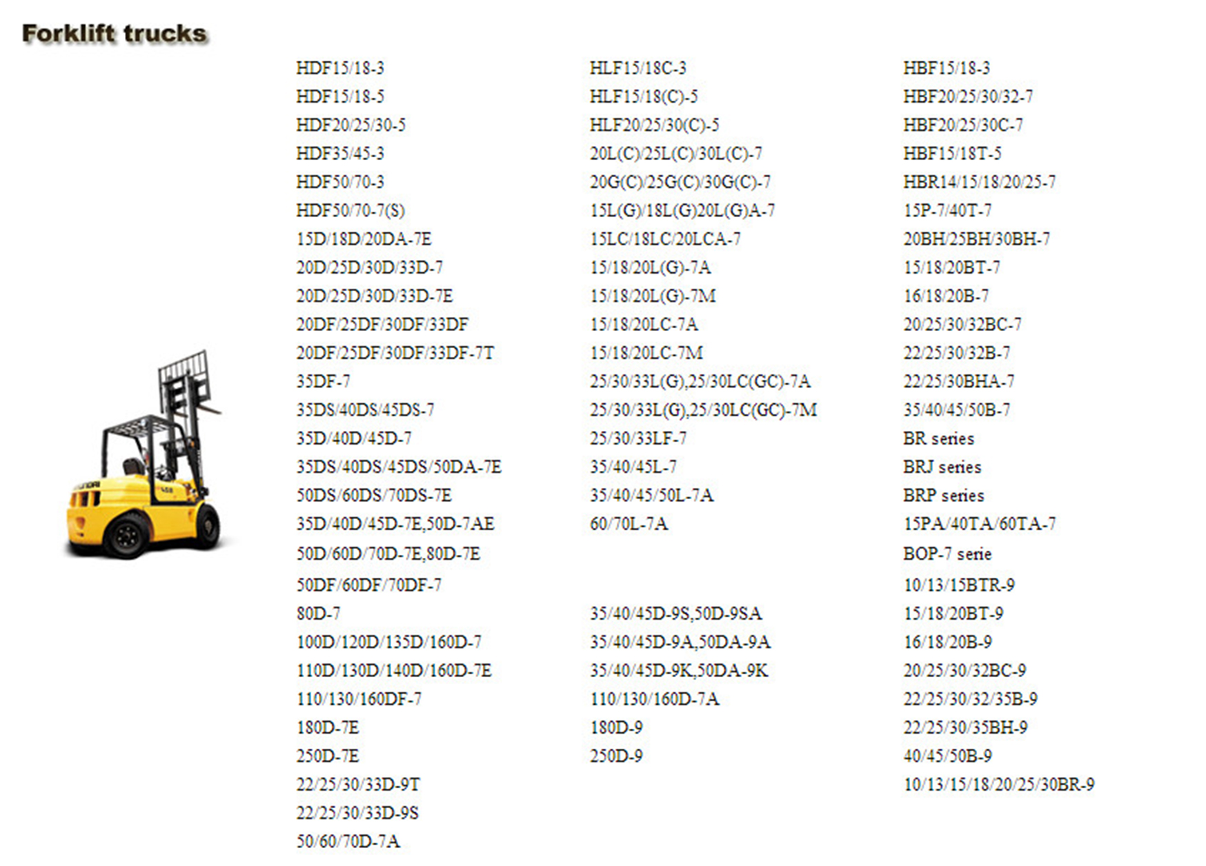 Список моделей вилочных погрузчиков представлен смотрите ниже.