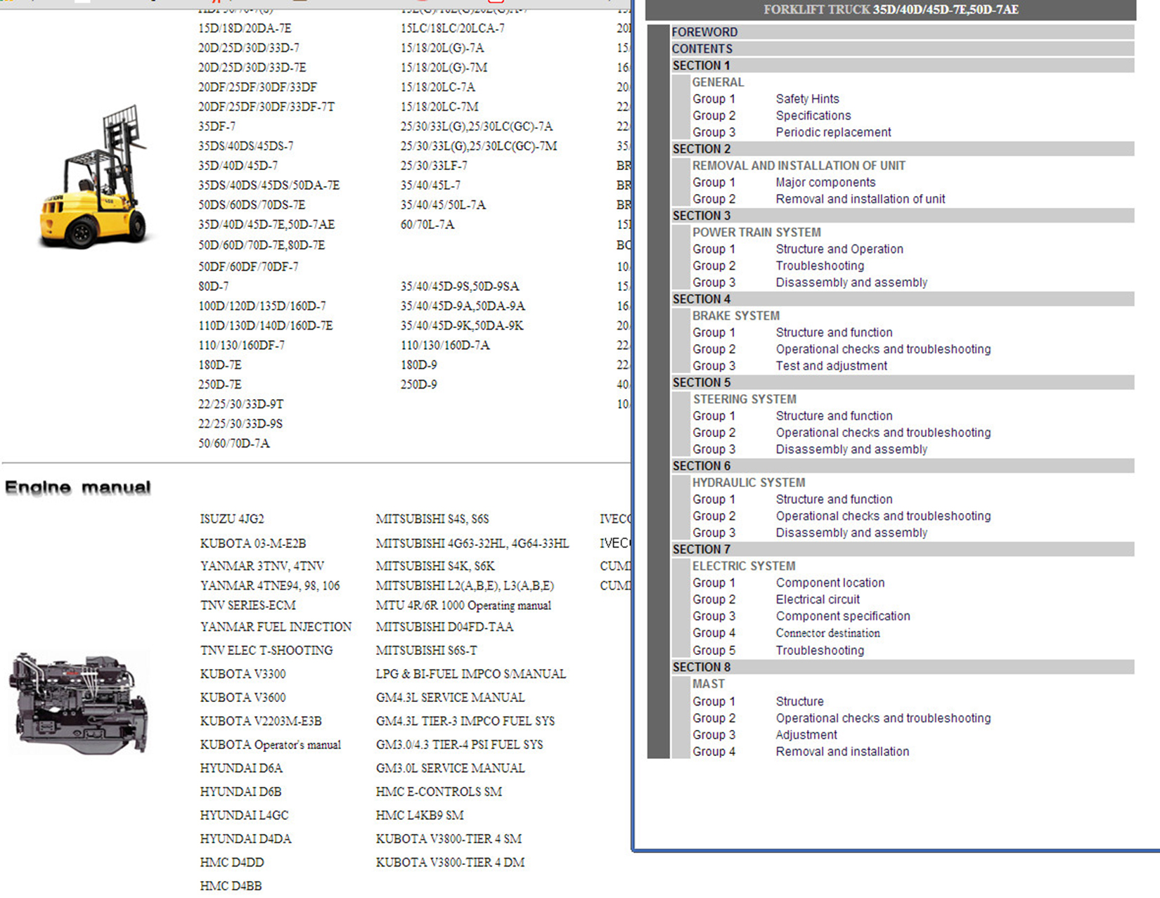 Hyundai forklift trucks service manuals - Руководство по ремонту вилочных погрузчиков Hyundai и двигателей к ним,