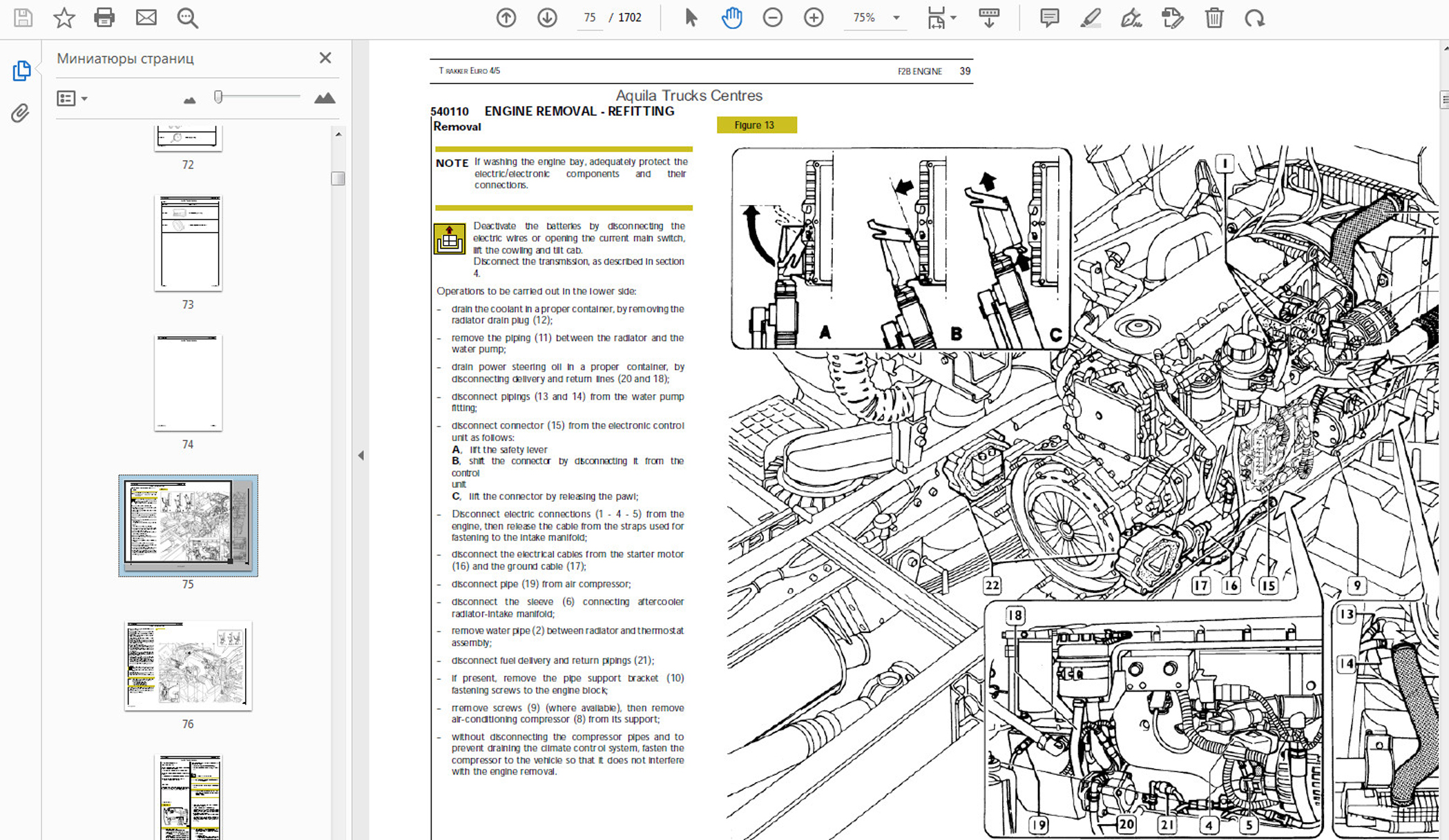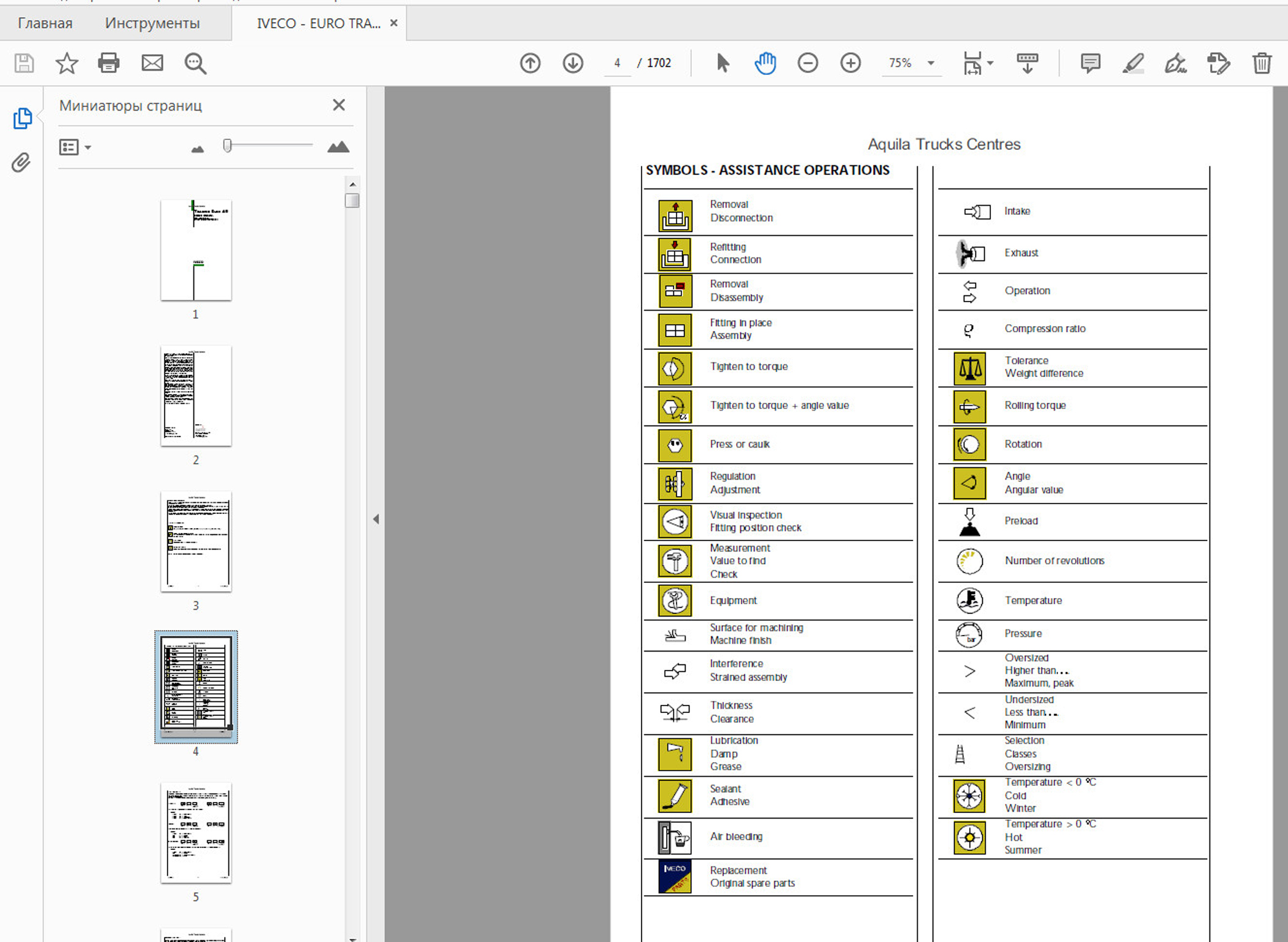 Каталог по ремонту IVECO MANUAL на английском языке, пример работы;
