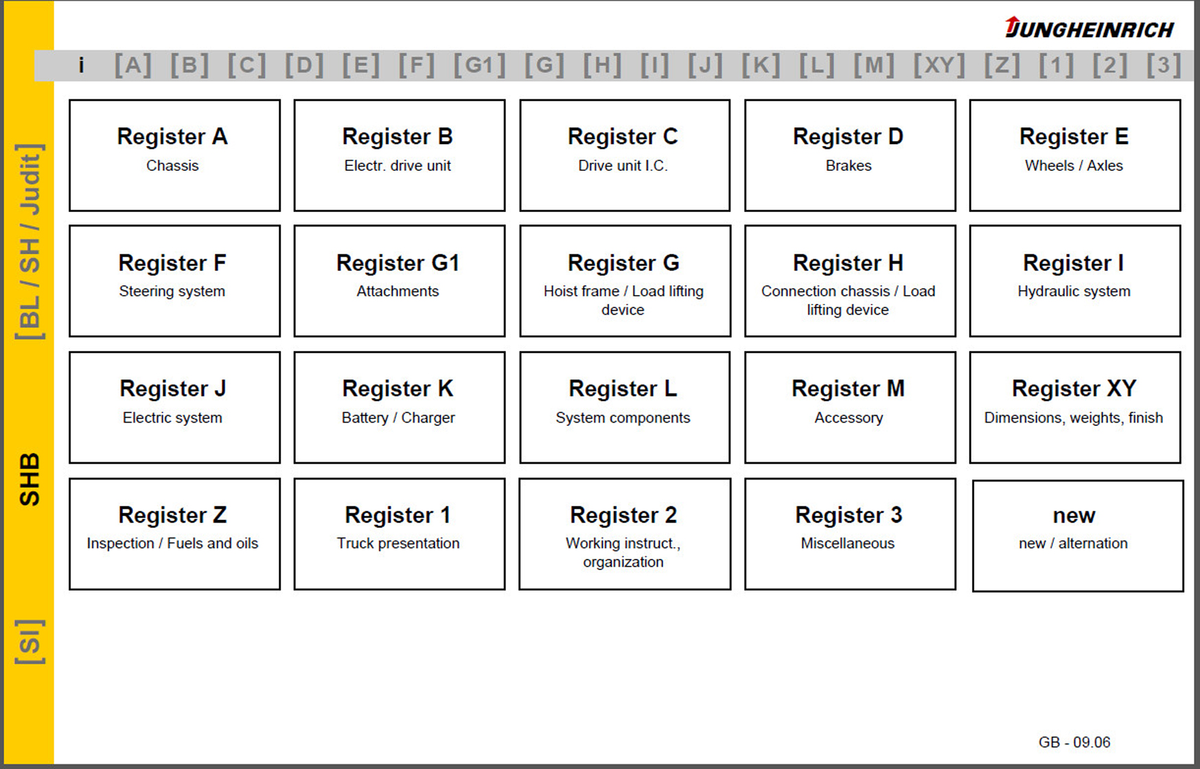 JETI SH (Jungheinrich) -руководство по ремонту включает следующие разделы: BL/SH/Judit Junior - AM/HC, ECE/ECD, ECC, EJC/EJB, EEC, EJE/ELE, EJD/EJR, EK/ES, EM/EP/SP, ER, EZ, ECR/ECP;