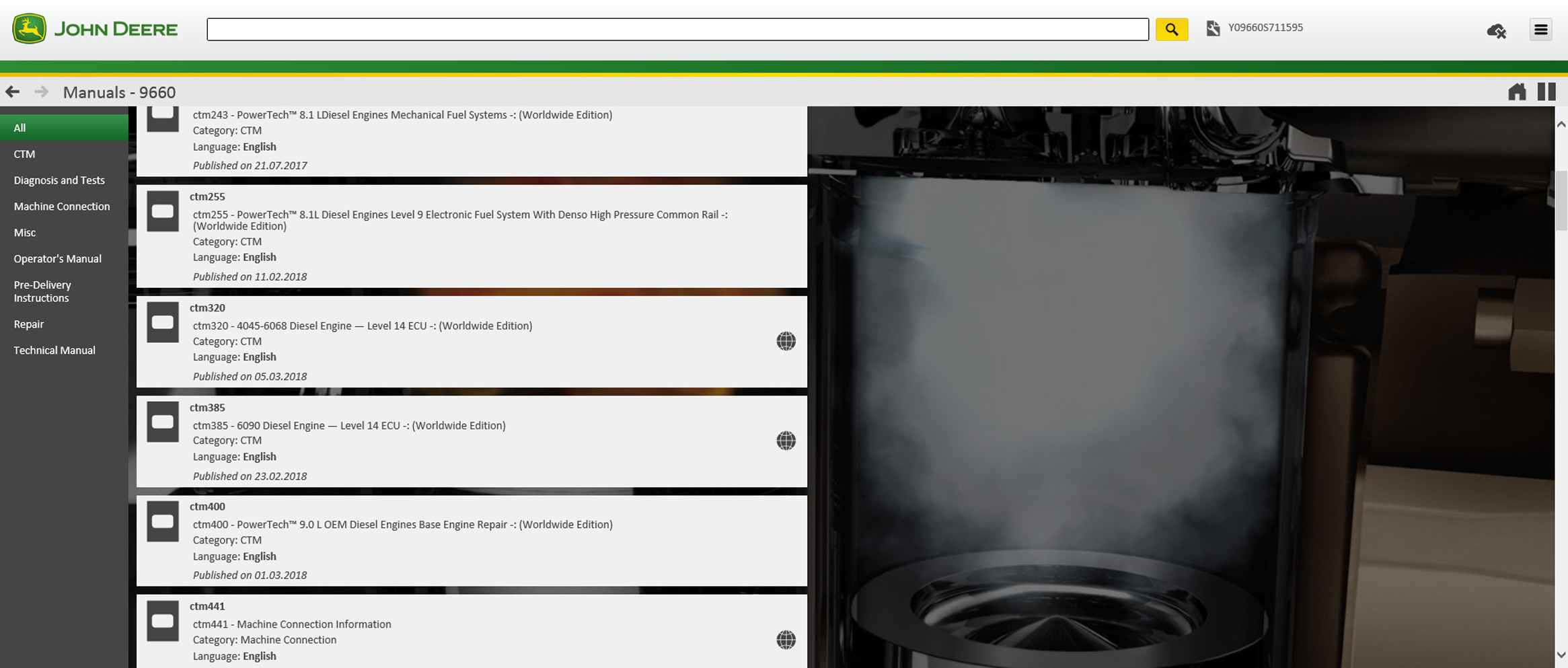 Service Advisor содержит информацию о электрических и гидравлическая схемах, сборка и разборка двигателя, трансмиссии для сельскохозяйственной, лесной, строительной техники марки John Deere так же все модели комбайнов, тракторов, погрузчиков, и другой техники.