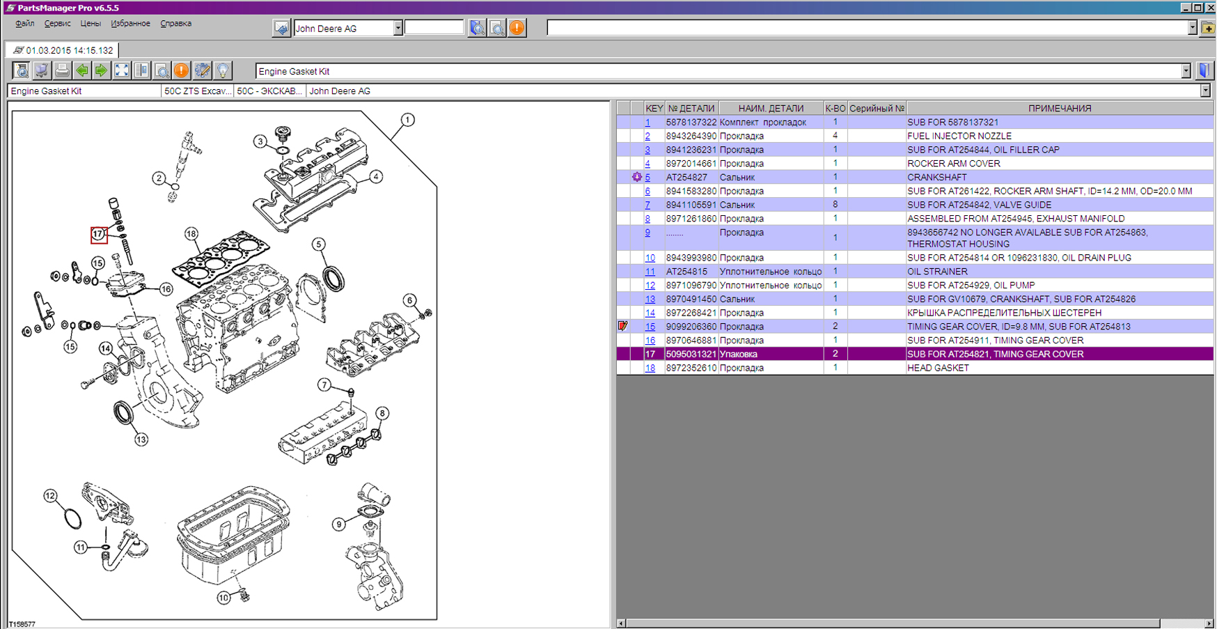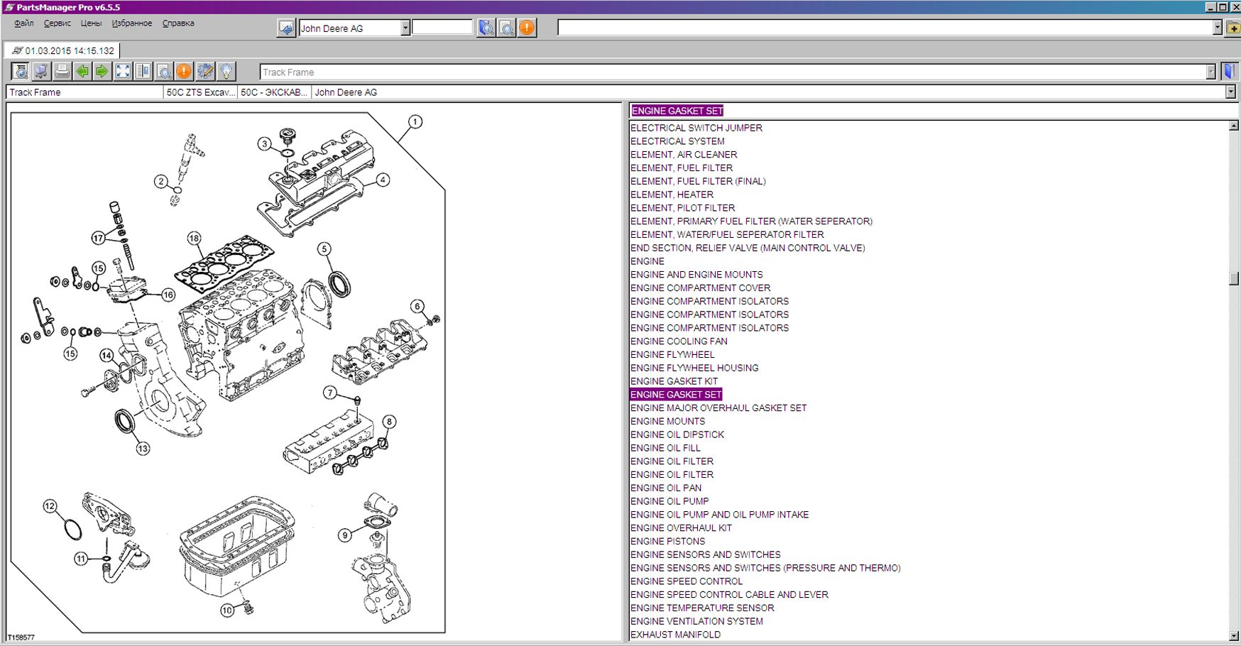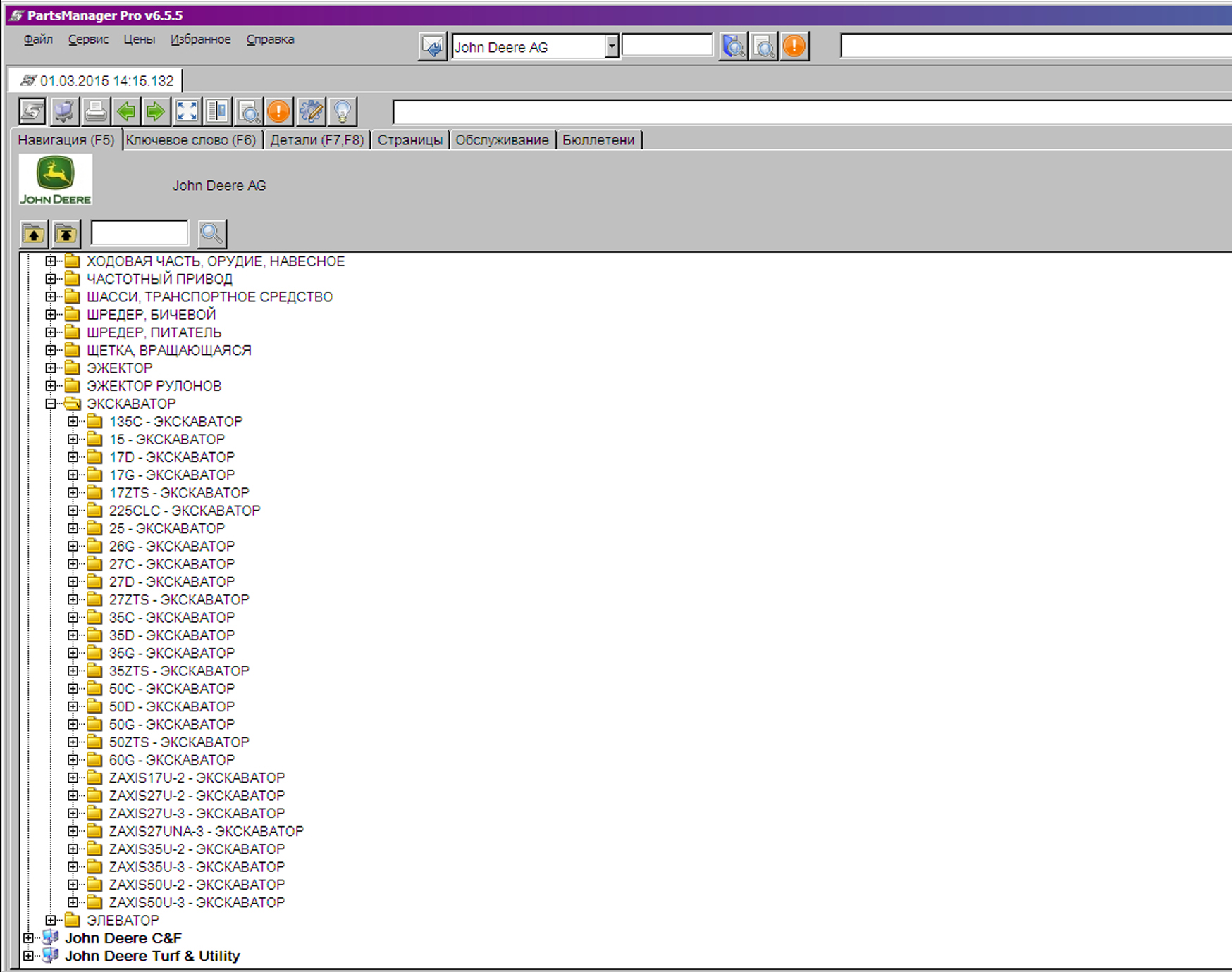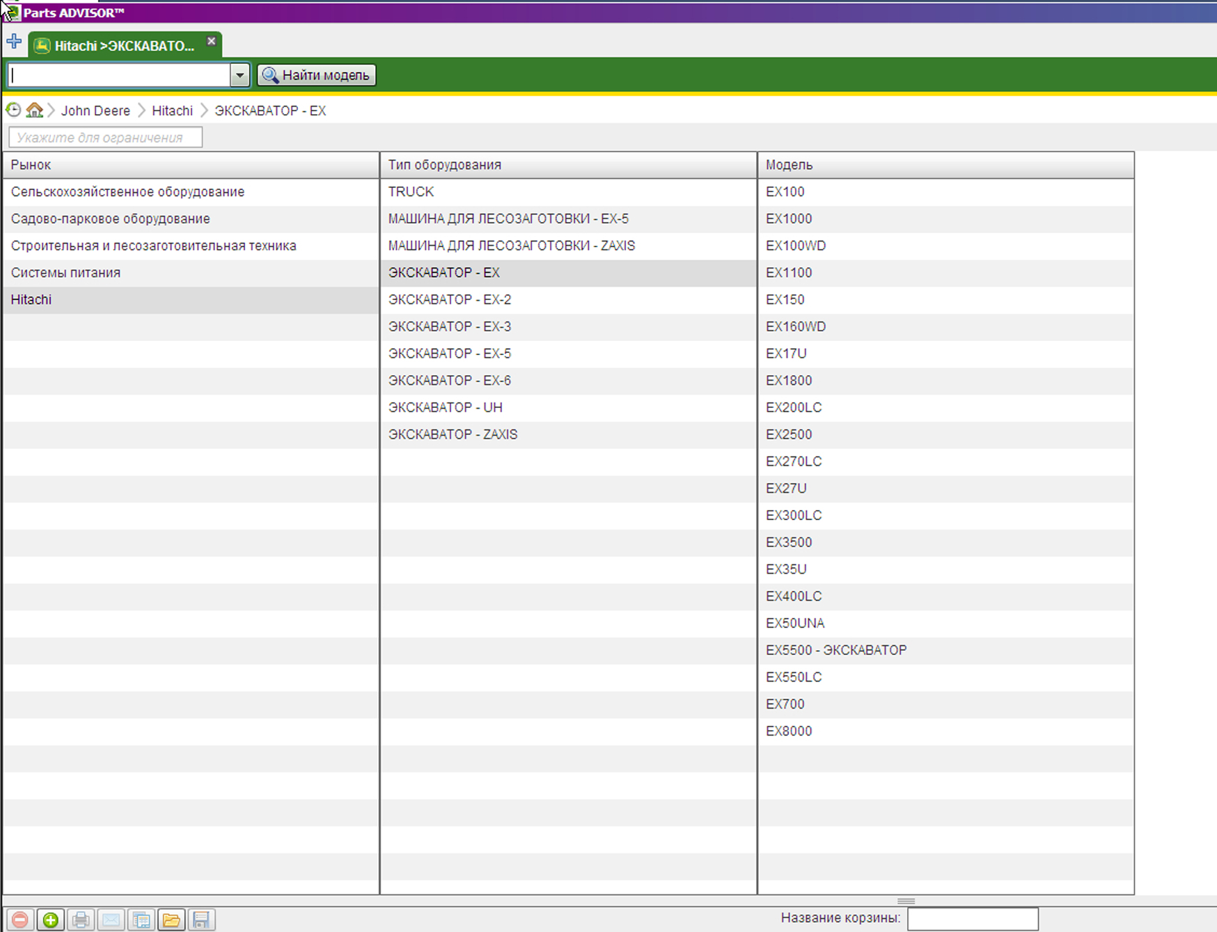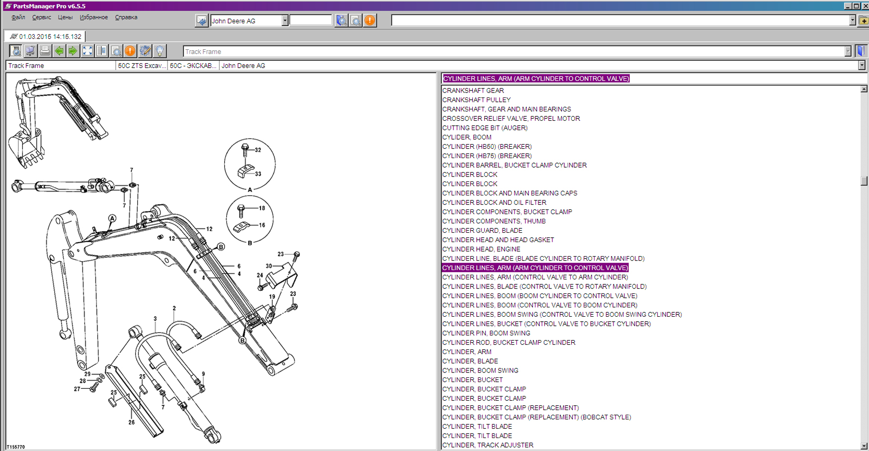 Пример работы с каталогом запчастей John Deere & HITACHI: