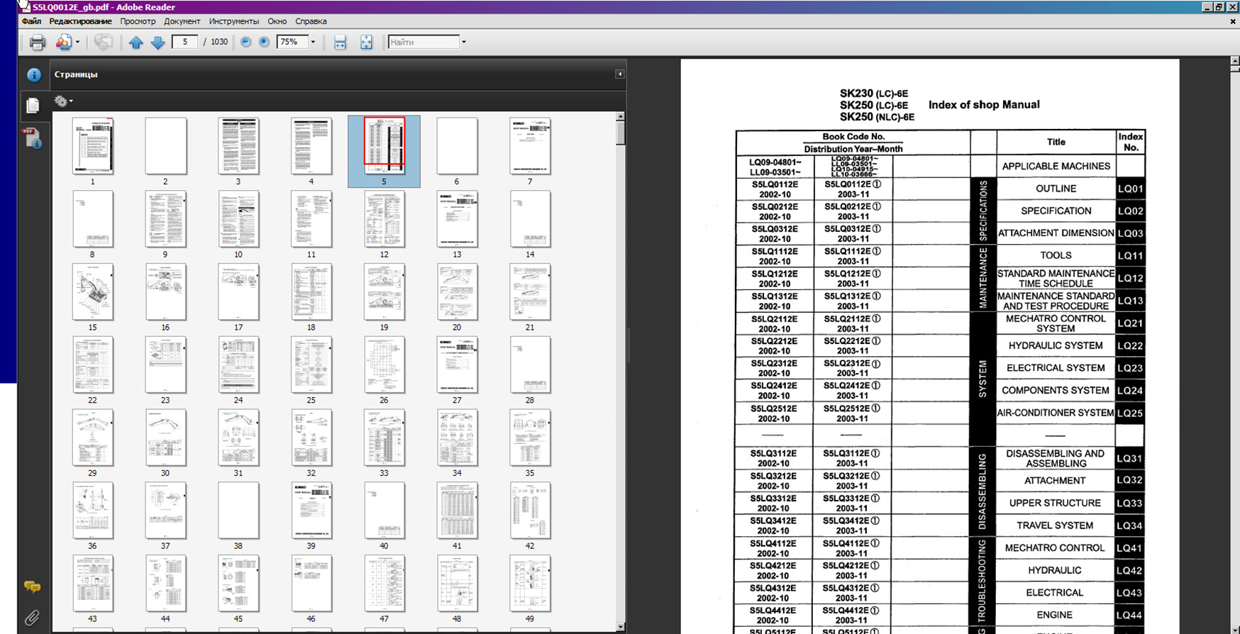 Kobelco Service Manuals - Руководство поставляется в формате PDF, который может работать под любой операционной системой Windows. Все страницы для печати. Использование данного руководства по ремонту является недорогим способом поддержания правильной работы вашей техники KOBELCO.