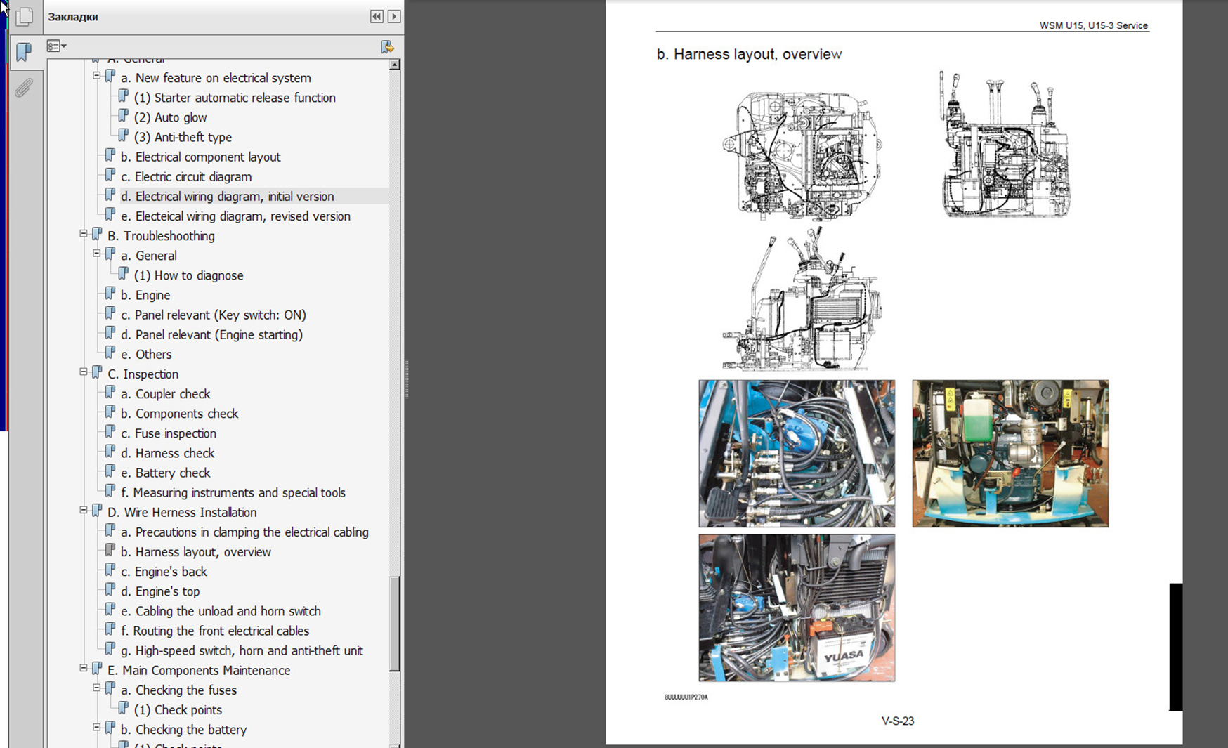Kubota manual вы узнаете расположения компонентов электрооборудования, распиновка разъемов, гидравлические схемы, а также возможные неисправности и методы их устранения.