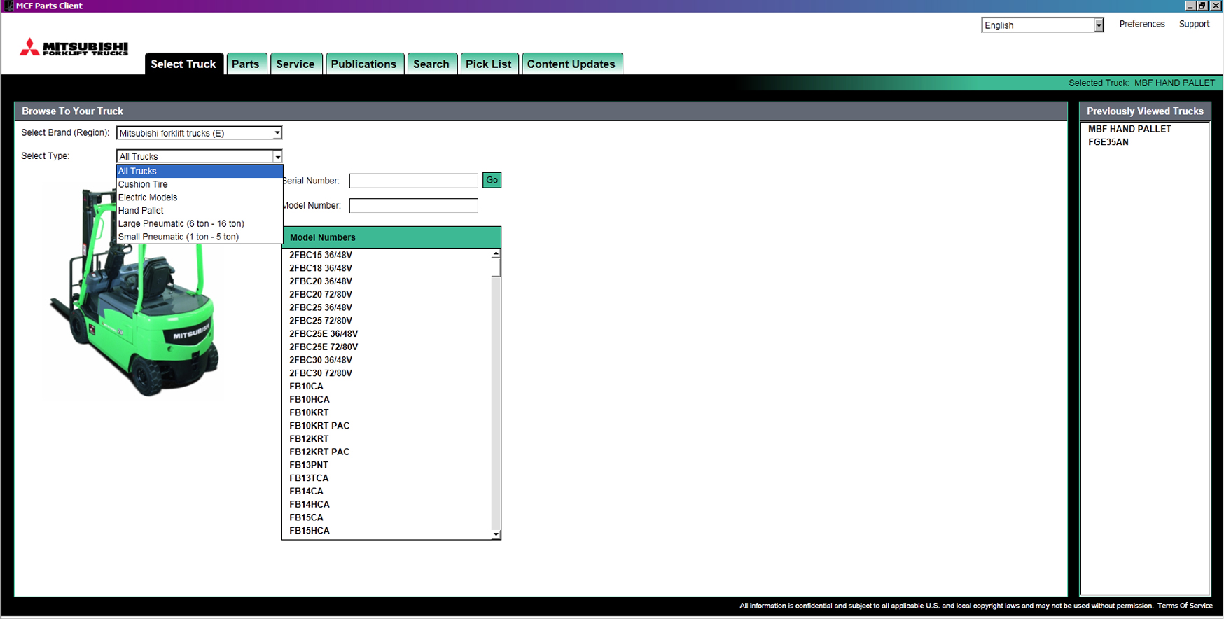 Интерфейс каталога Mitsubishi Forklift является очень простым и удобным.
