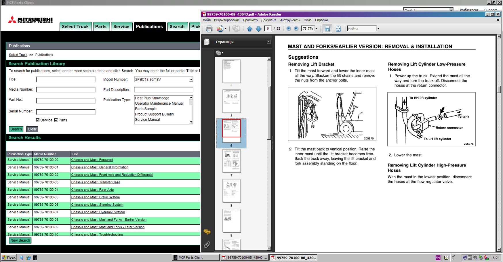 ПРИМЕР РАБОТЫ С КАТАЛОГОМ Mitsubishi ForkLift;