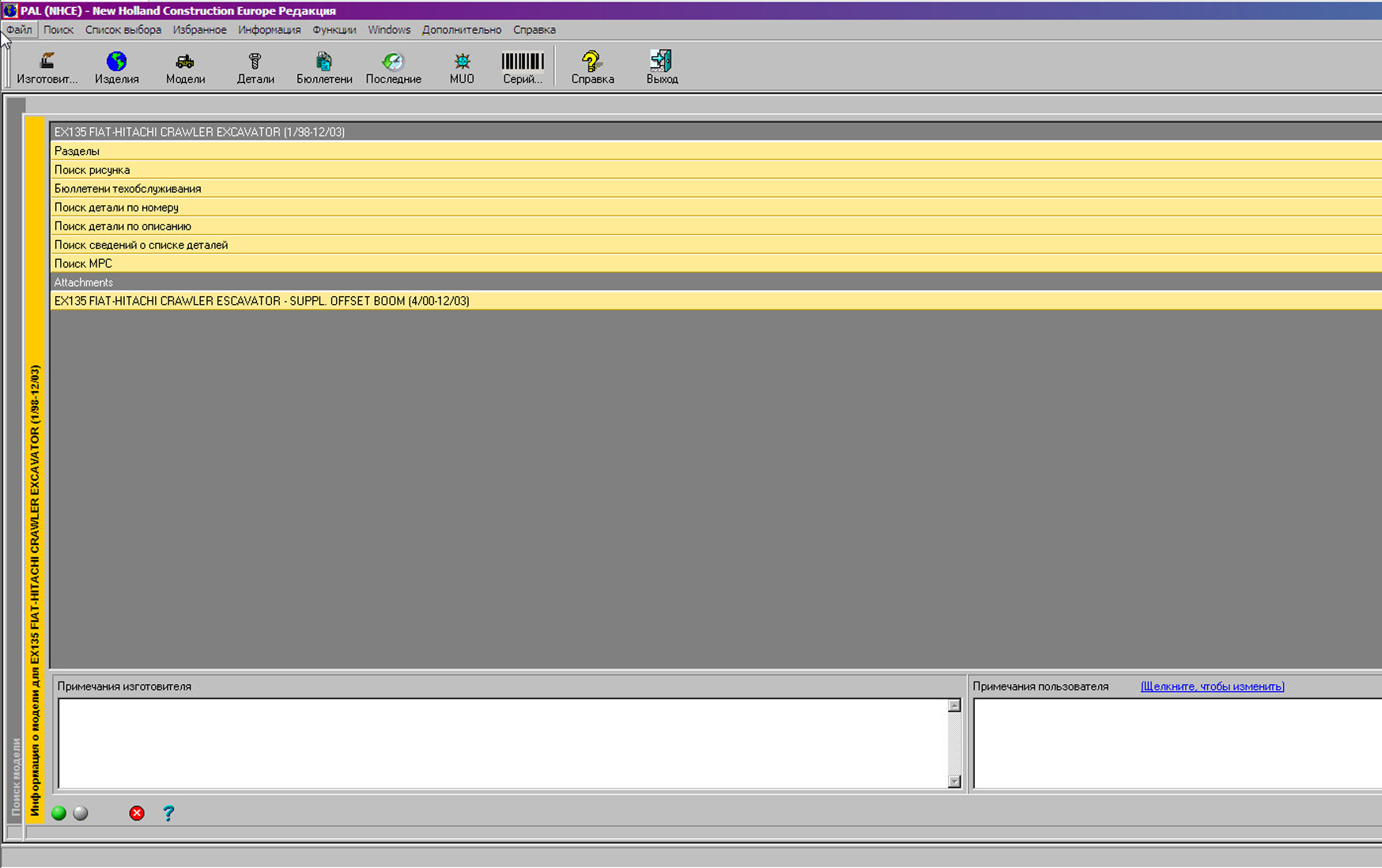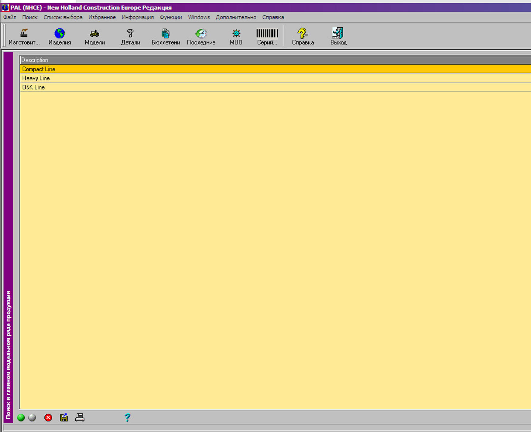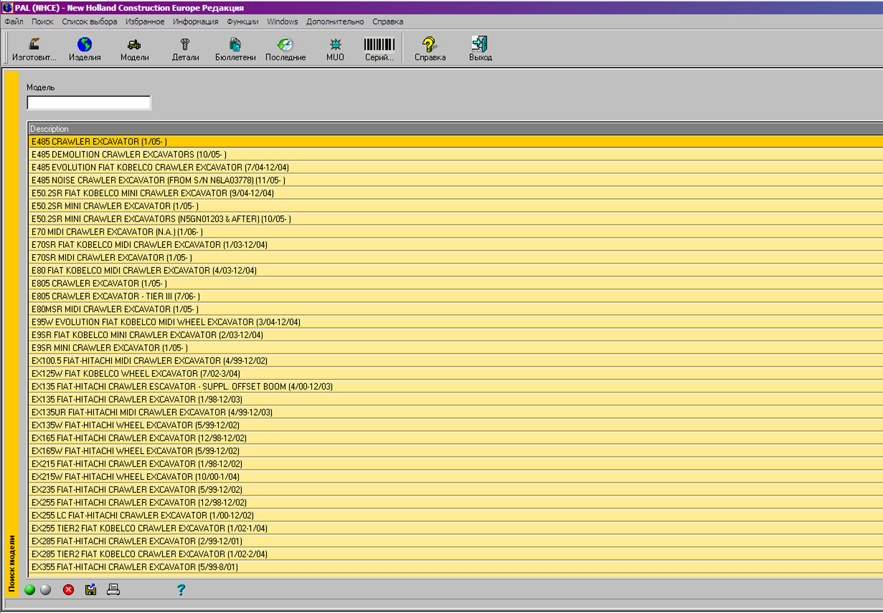 Интерфейс каталога New Holland Construction PAL очень простой, есть поиск по типу, модели,