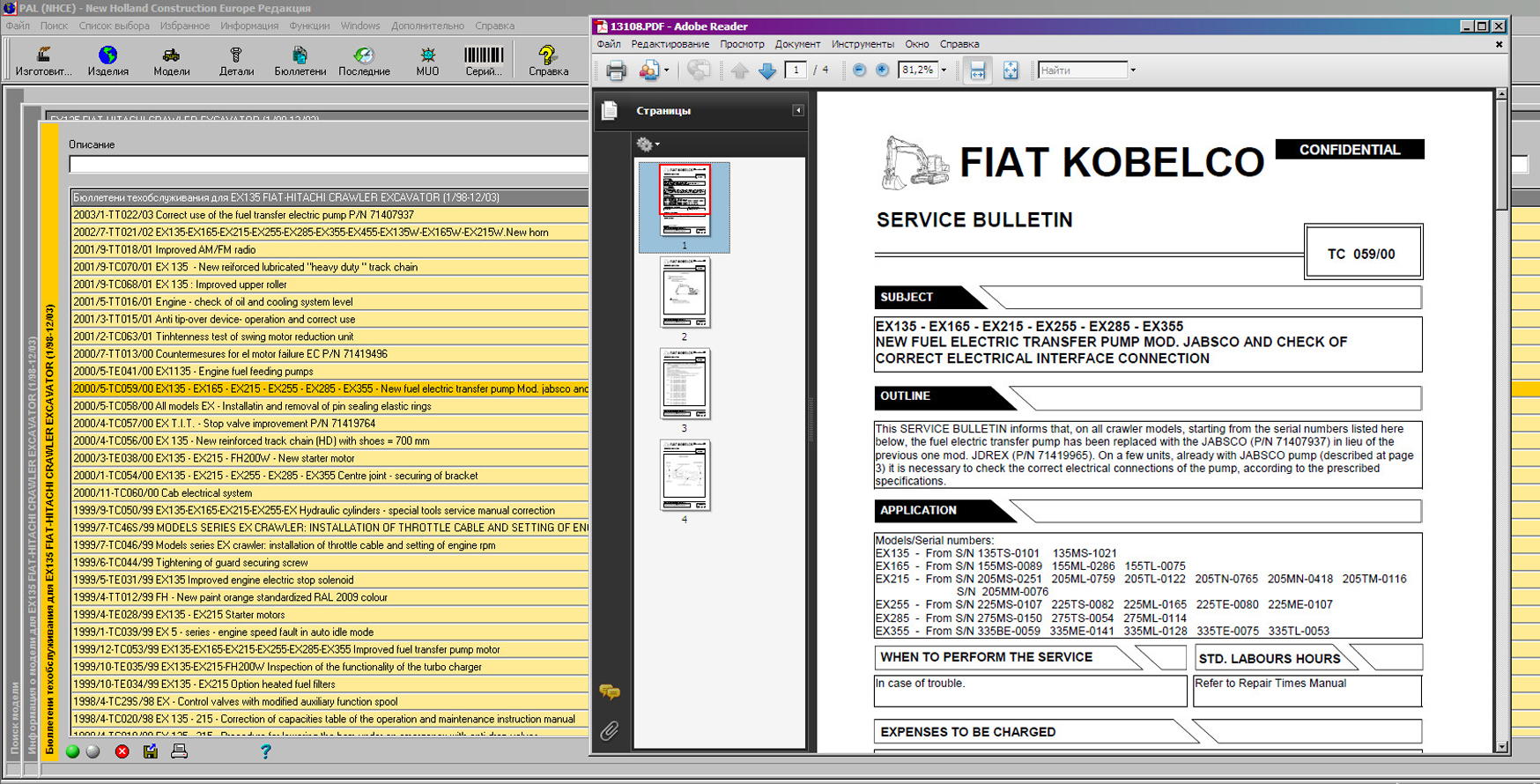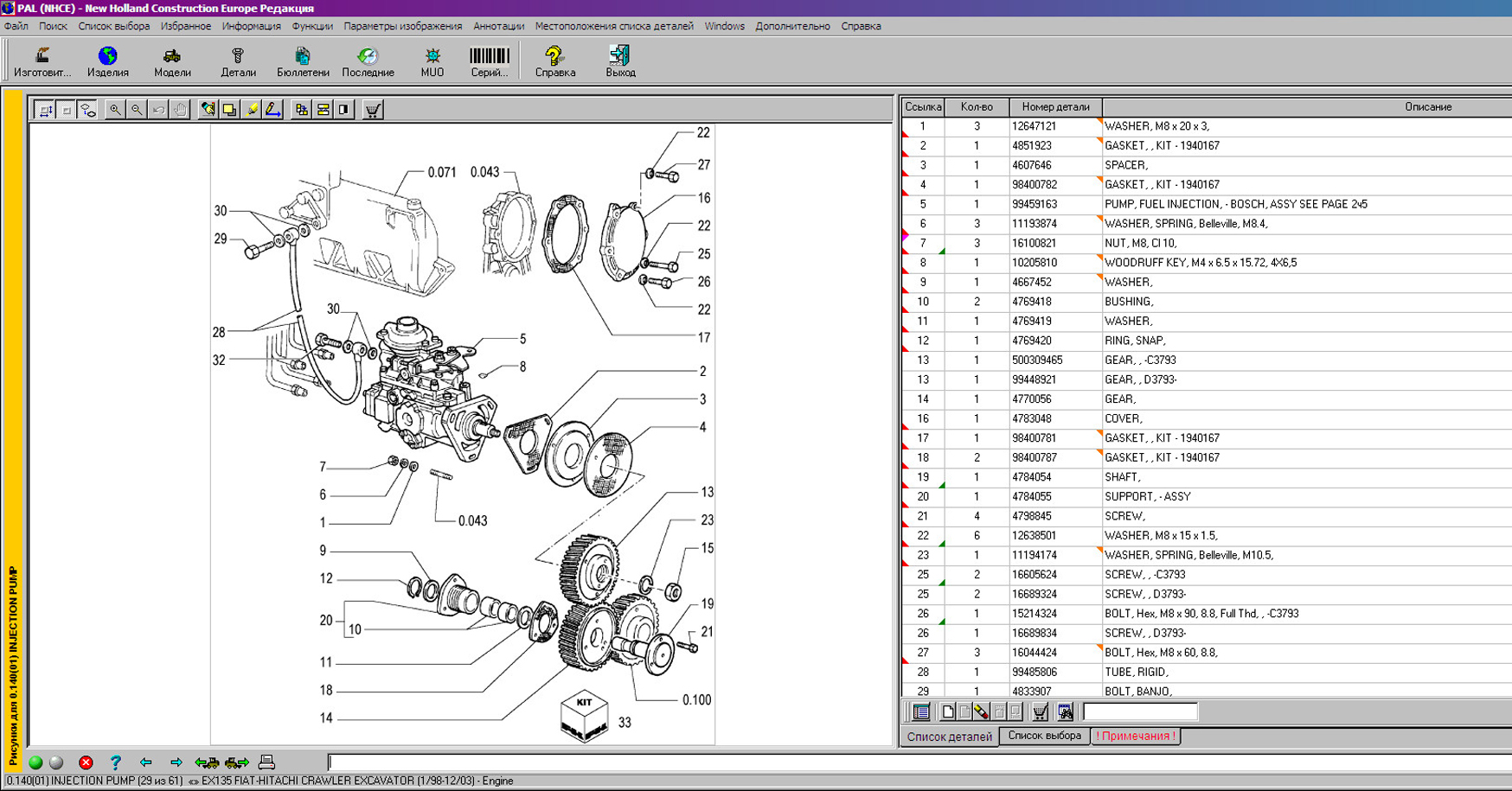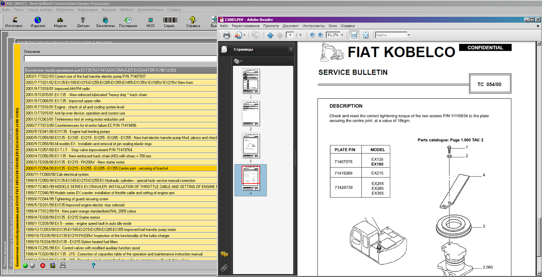 New Holland Construction PAL (NHCE) содержит каталог запчастей и сервисные бюллетени для строительной и специальной техники на колёсном и гусиничном ходу, включая бульдозеры, грейдеры, экскаваторы, погрузчики и самосвалы с шарнирно-сочленённой рамой - Fiat Hitachi, Fiat Kobelco .