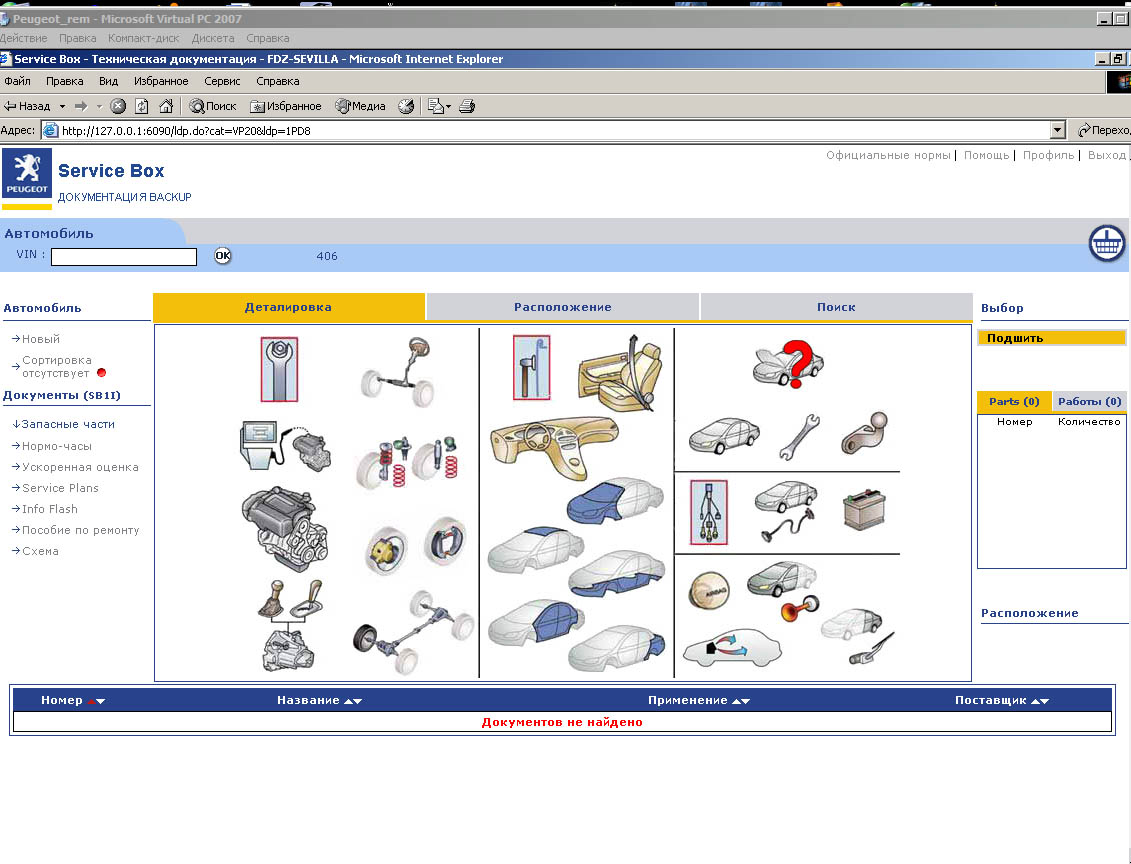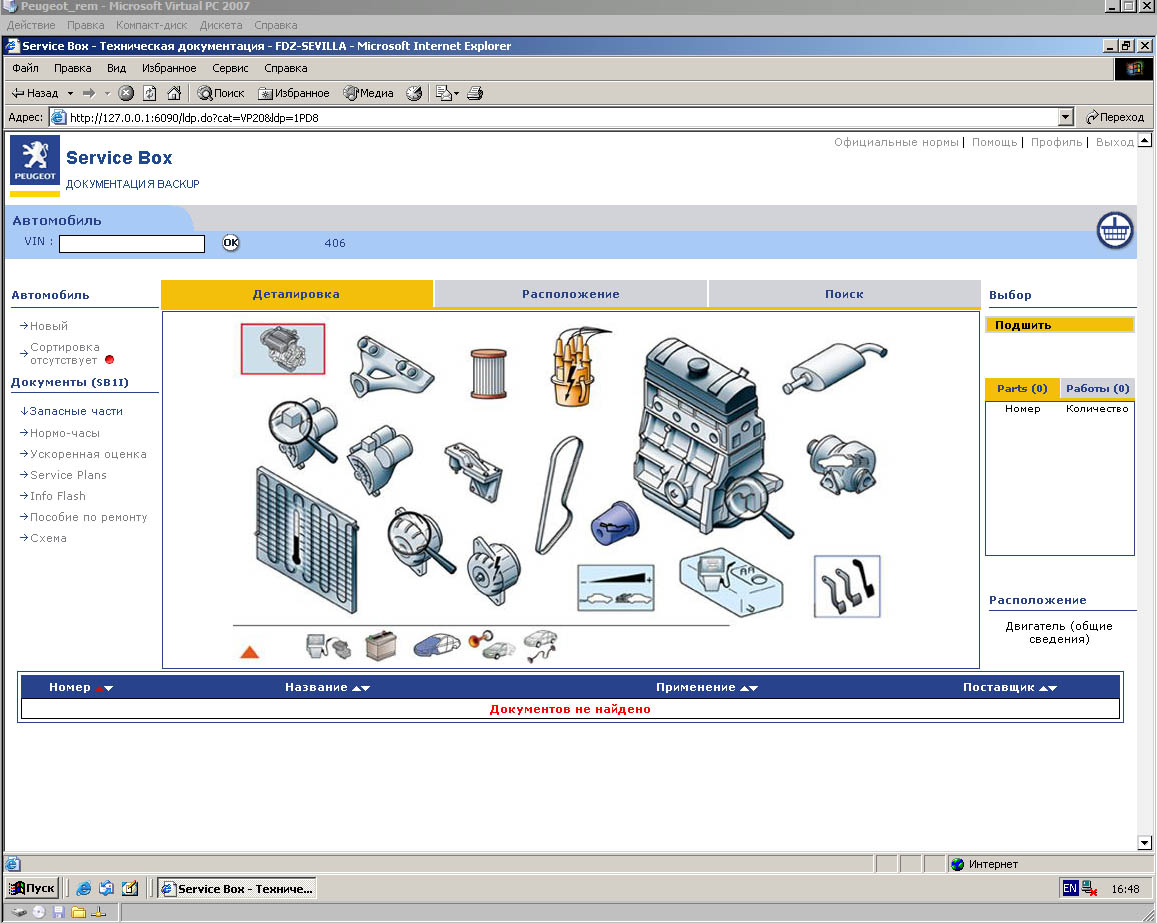 каталог Peugeot Parts установлен на виртуальную машину