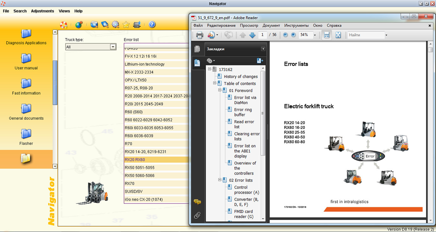 Still STEDS Navigator - это каталог запчастей, руководства по ремонту, диагностика, руководства пользователя, общая документация, списки ошибок, флэш-файлы, техническое обслуживание, электрические и гидравлические схемы