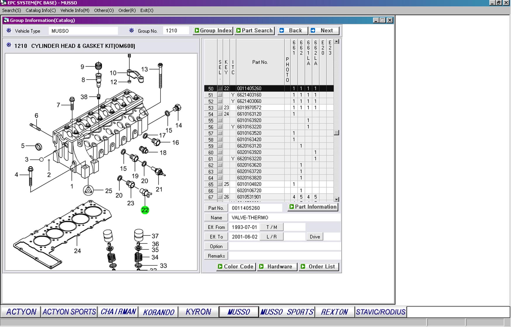 данной информации подобрать нужные номера по каталогу SsangYong EPC .