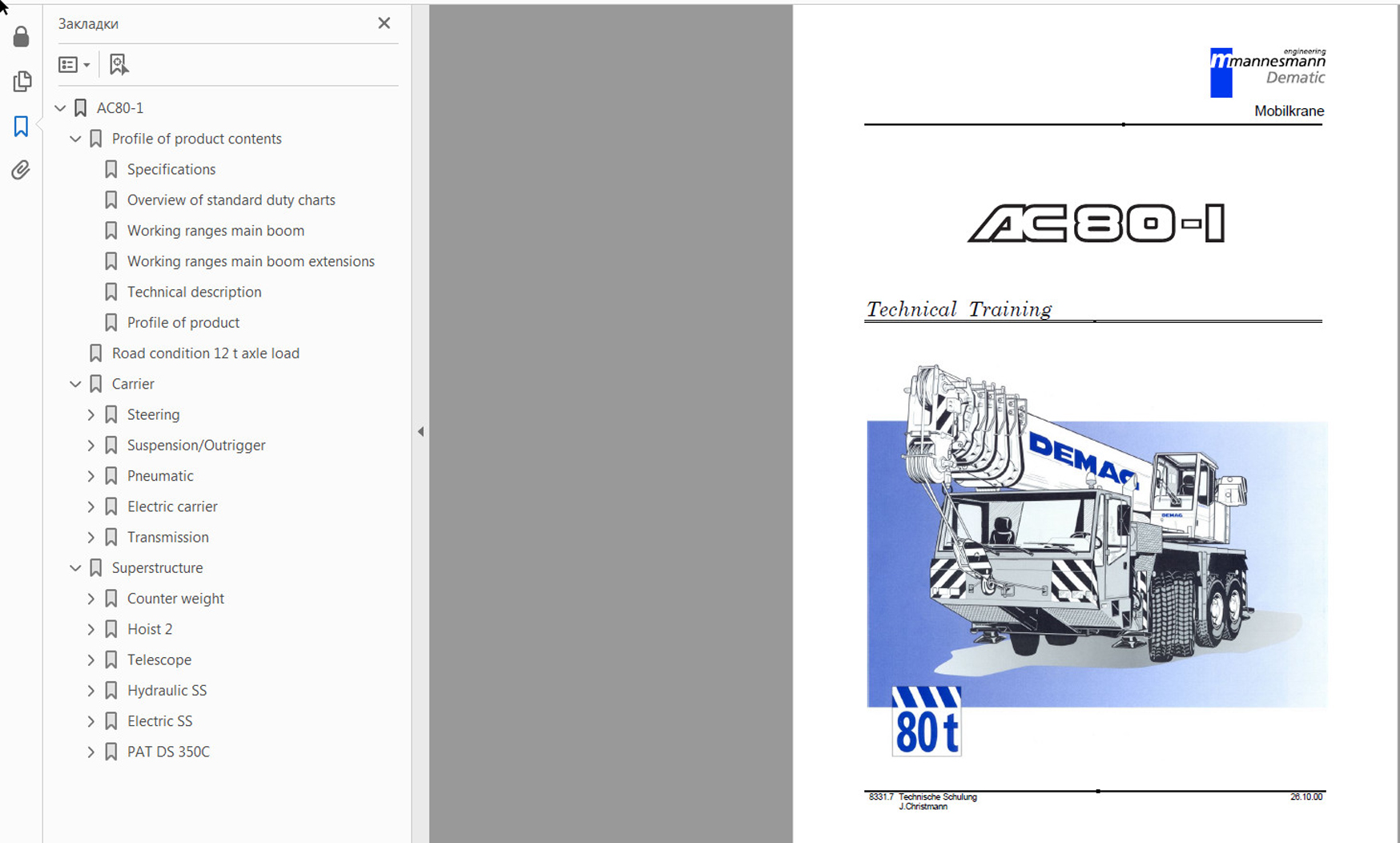 Цена каталога Terex Demag Mobile Crane Service Manual, Operator & Maintenance Manual - 20000 руб (КОМПЛЕКТ)