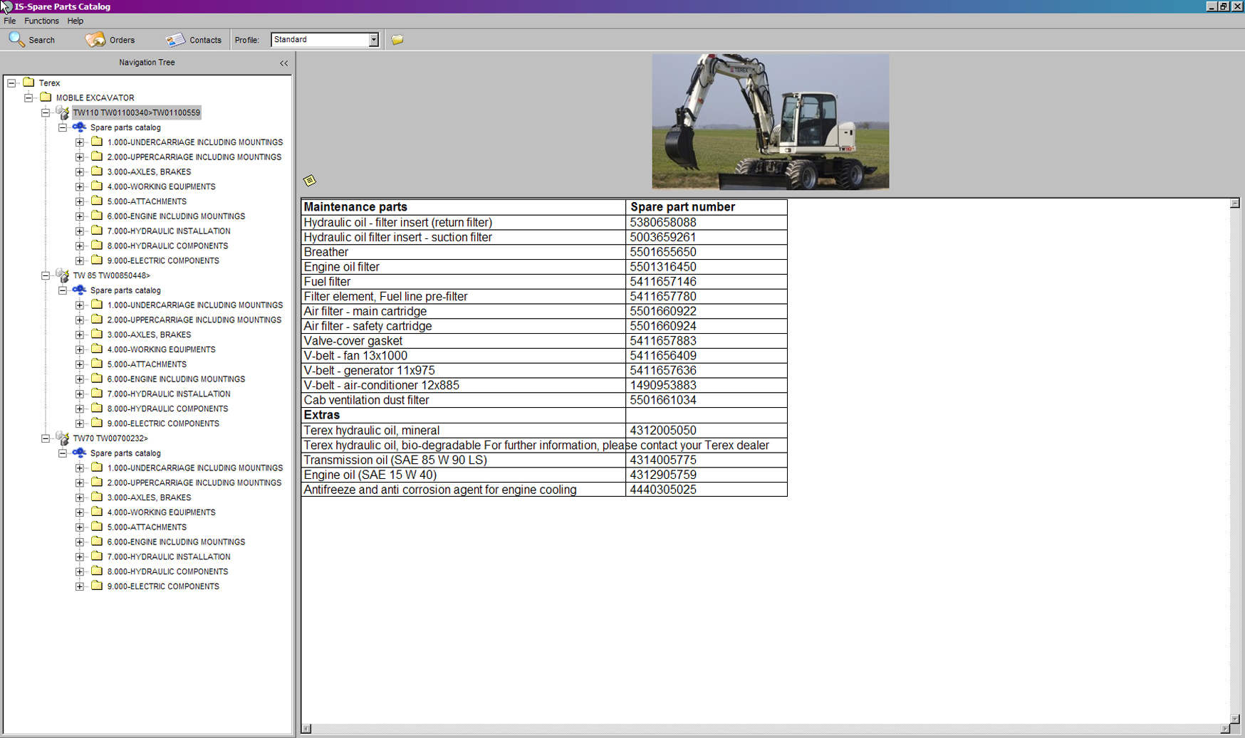 TEREX TW - это каталог запчастей который включает в себя всю необходимую информацию для обслуживания техники TEREX.