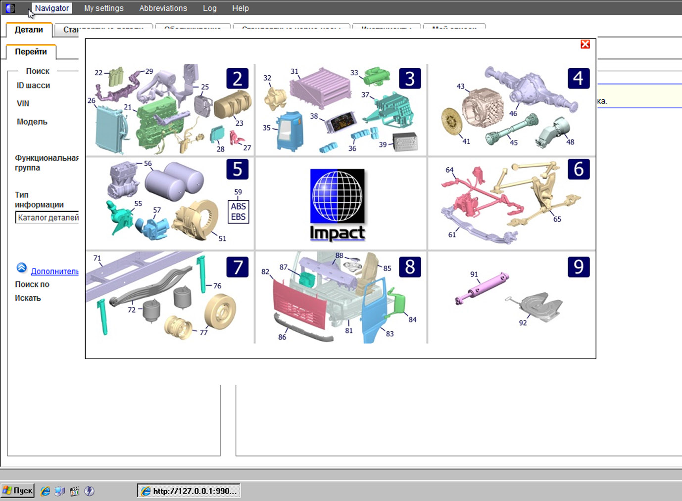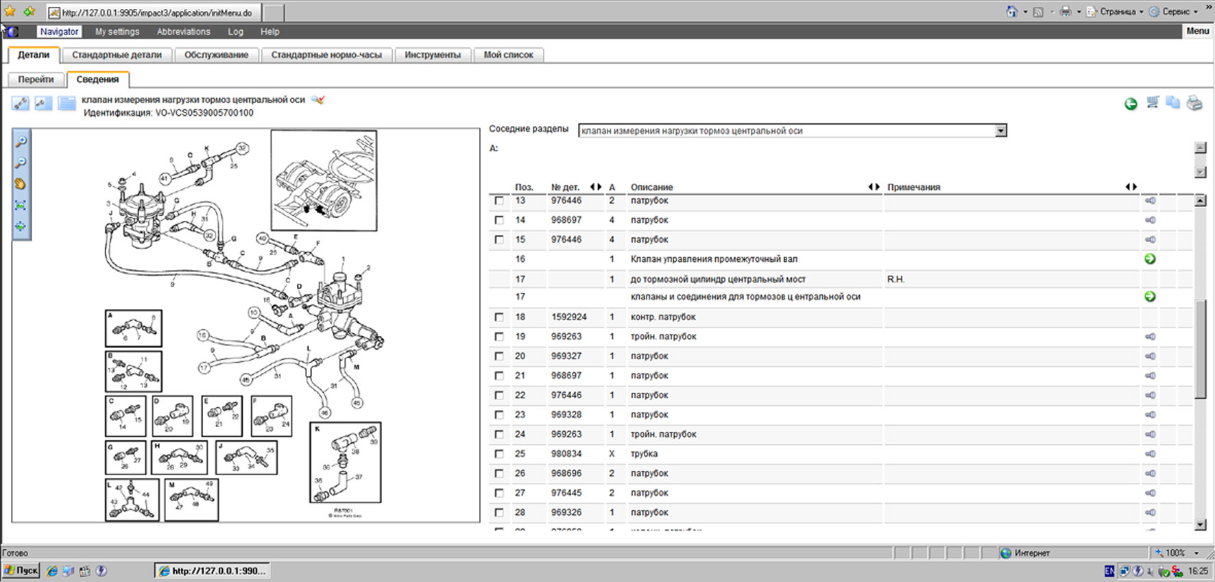 В каталоге Volvo Impact имеется вся необходимая информация по ремонту, сервисному обслуживанию, эксплуатации, диагностики, электрические и гидравлические схемы, технические спецификации и характеристики, нормо-часы выполнения технических и эксплуатационных процедур и конечно же электронный каталог запчастей VOLVO.