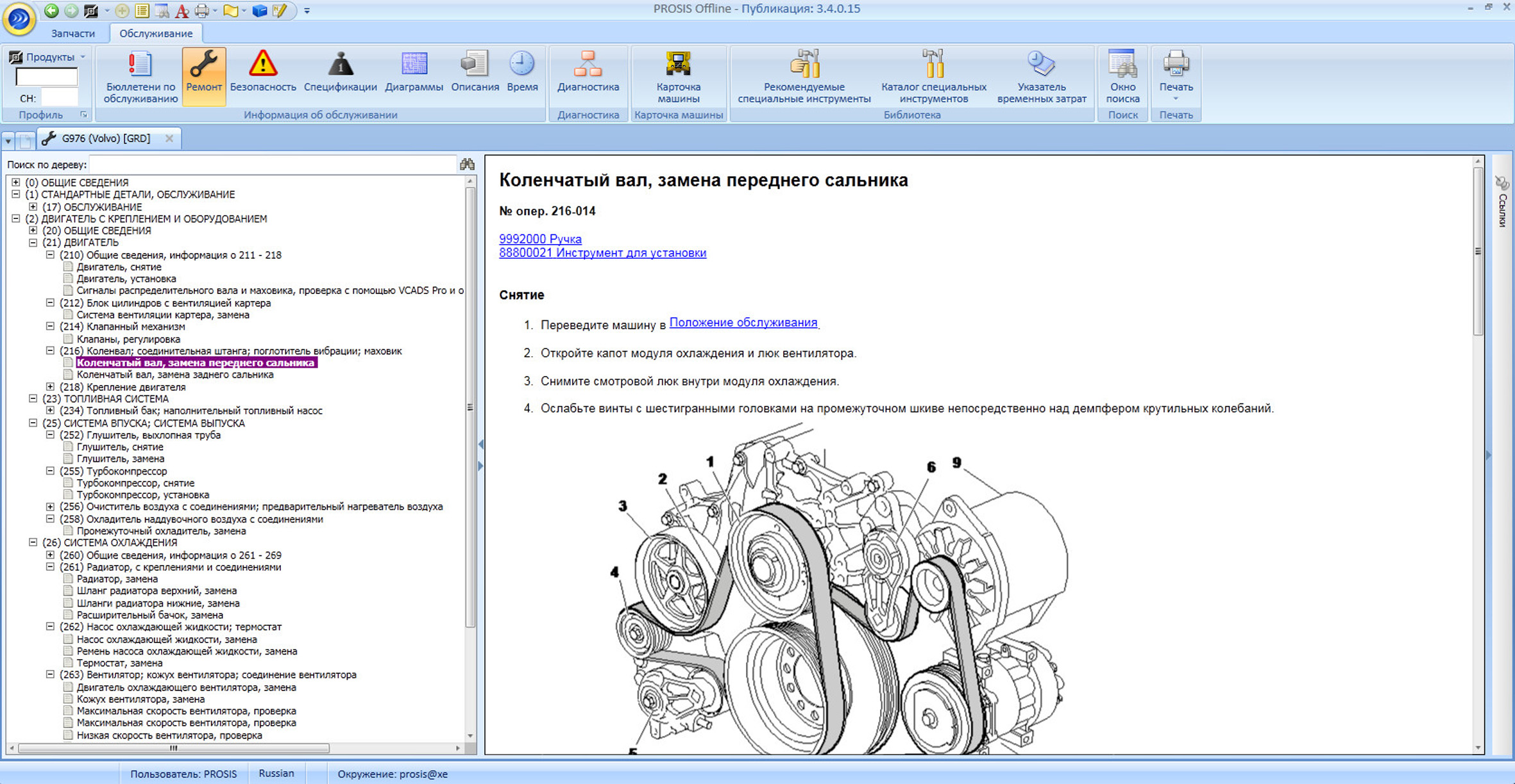 2. Volvo Prosis это руководства по ремонту и техническому обслуживанию включают пошаговые инструкции, нормы затяжки, списки инструментов, порядок операций, визуальные схемы и диаграммы. С помощью каталога Volvo Prosis обеспечивается точное выполнение работ и соблюдение техники безопасности.