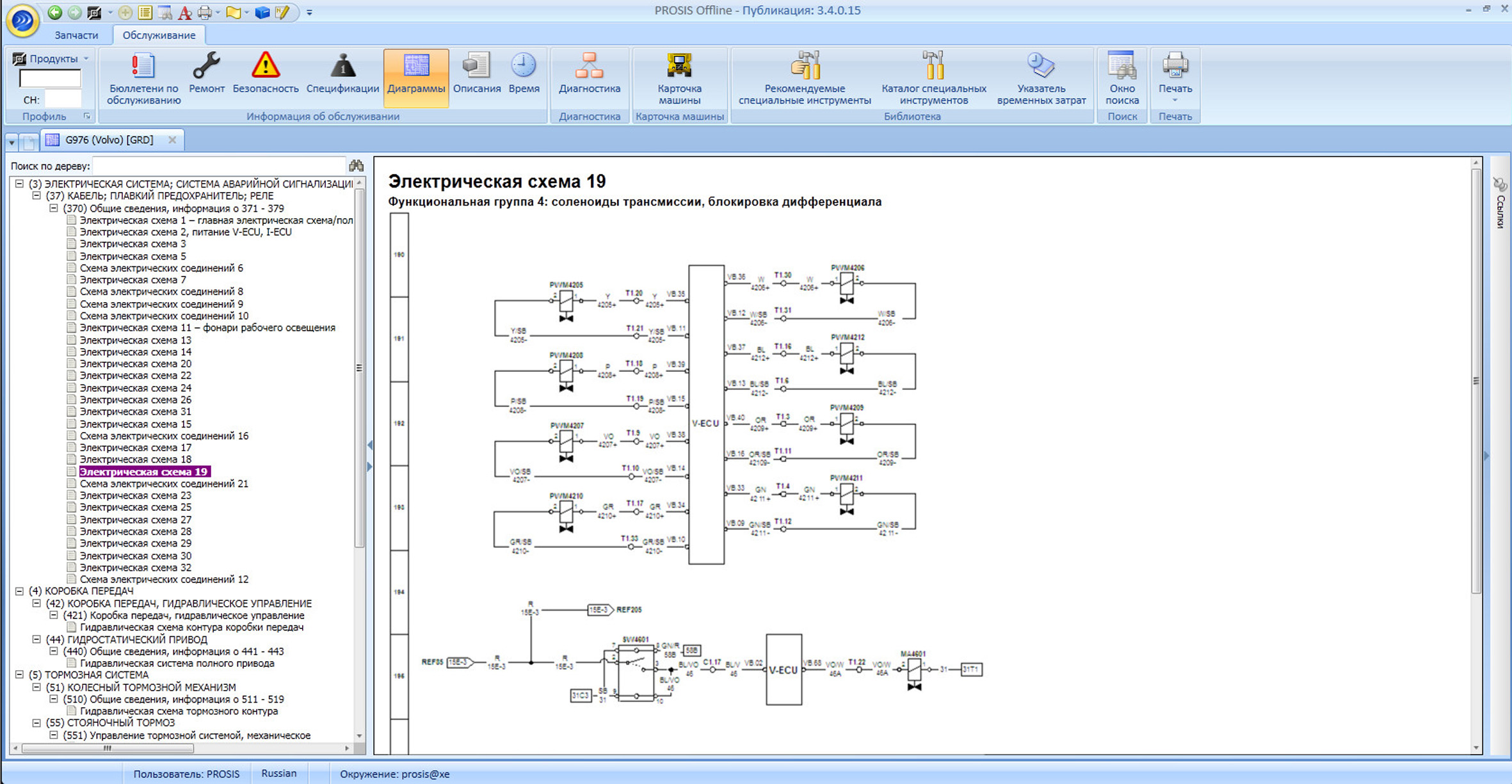 4. В каталоге Volvo Prosis представлены электрические и гидравлические схемы всех основных систем техники.