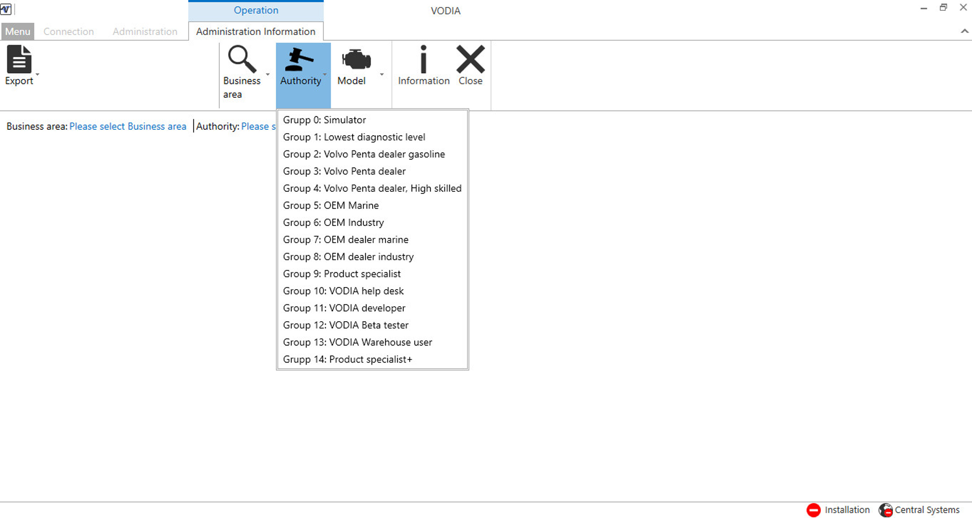 Пример работы с VOLVO PENTA VODIA:
