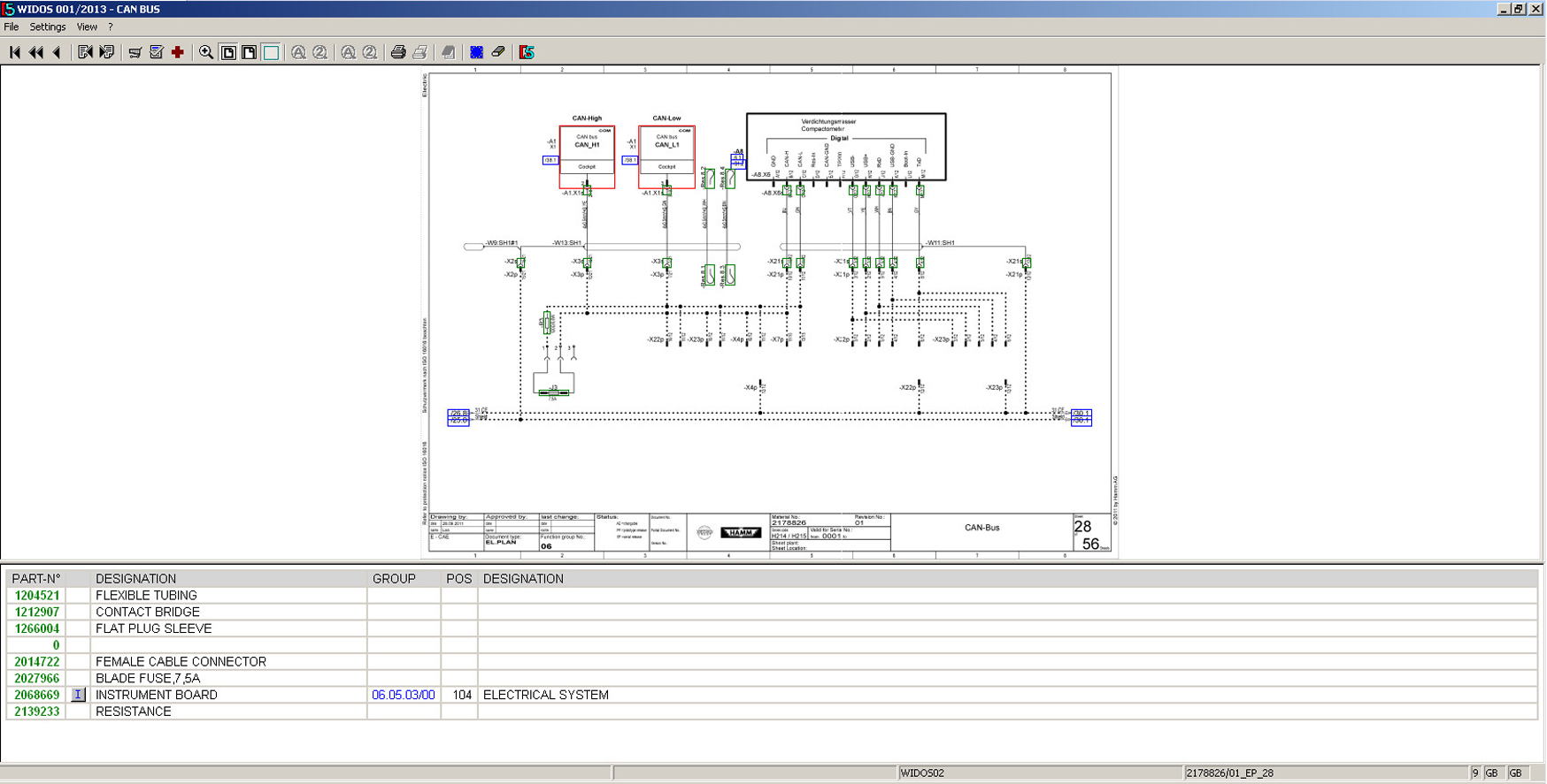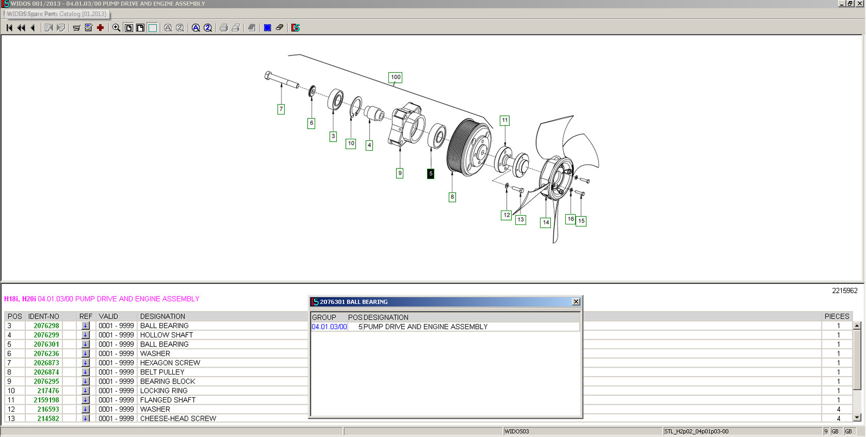 Интерфейс каталог запчастей и документация по ремонту Widos Wirtgen Group (Видос)
