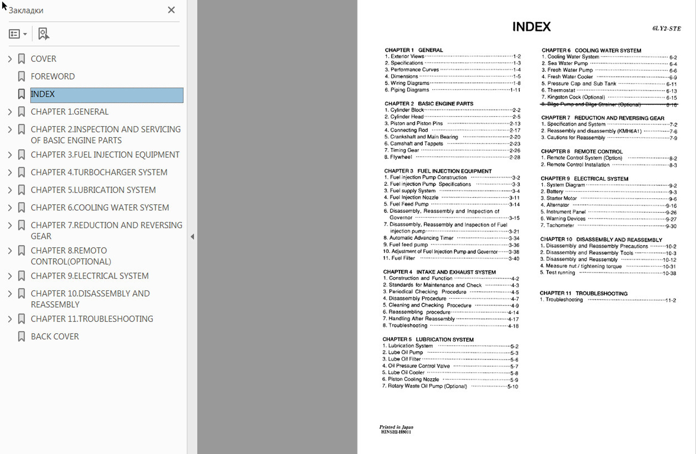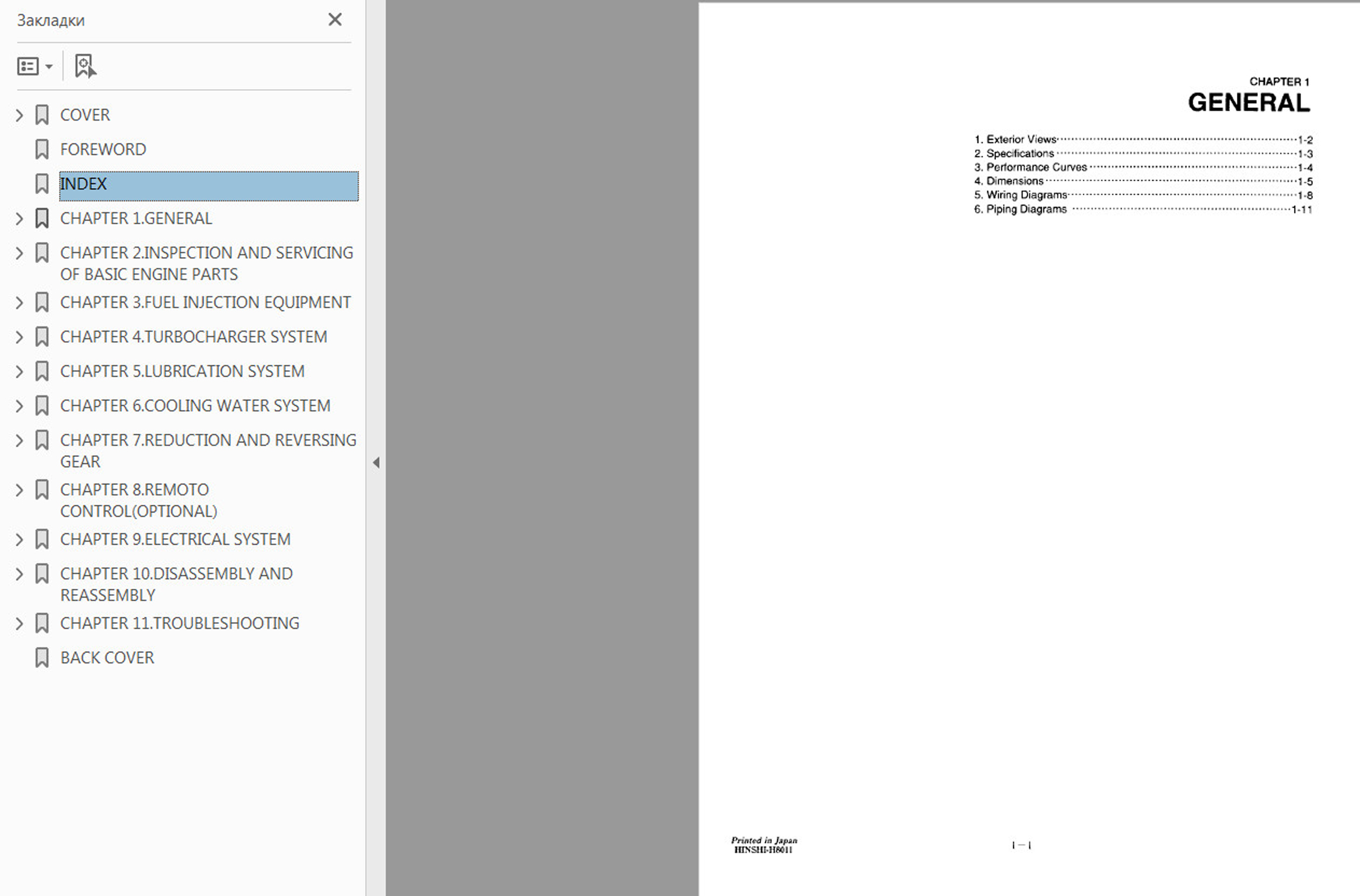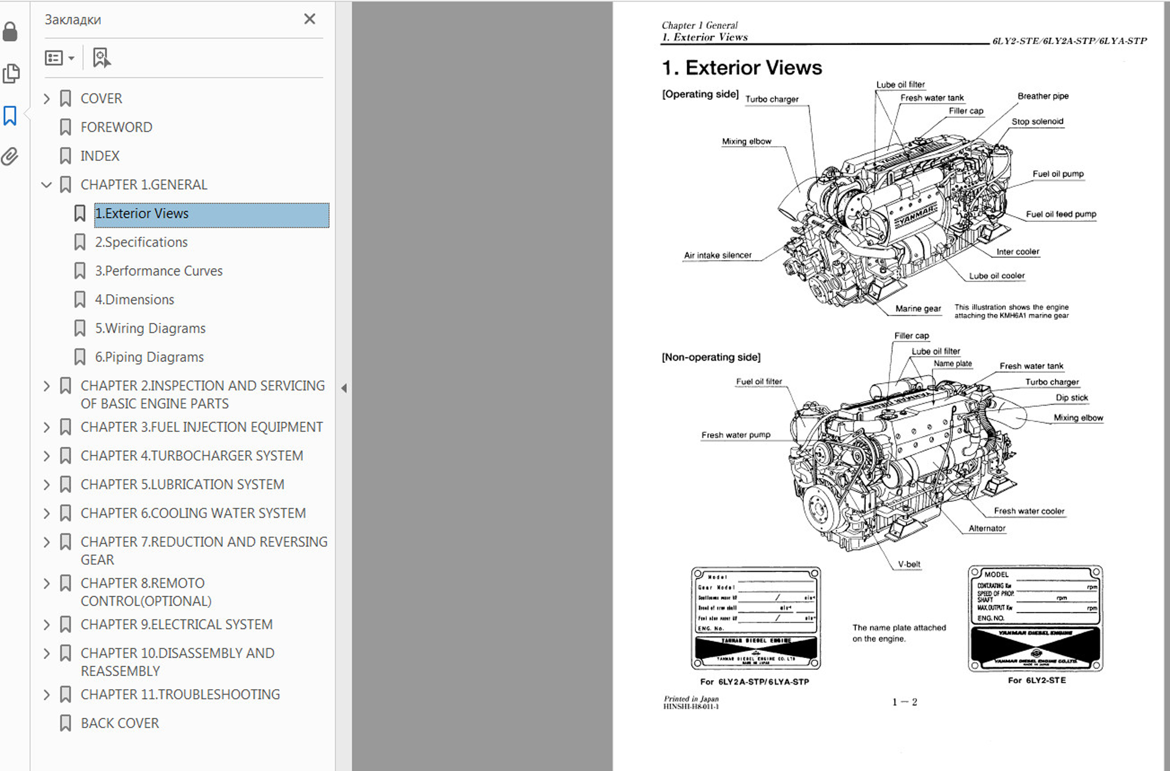Пример работы с WORKSHOP MANUALS Engines YANMAR: