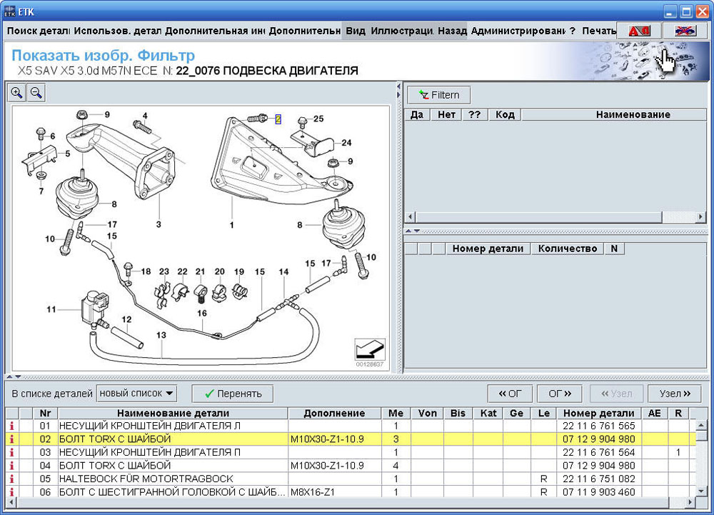 или выше. Каталог BMW ETK (каталог запчастей БМВ) полностью переведен на русский язык.