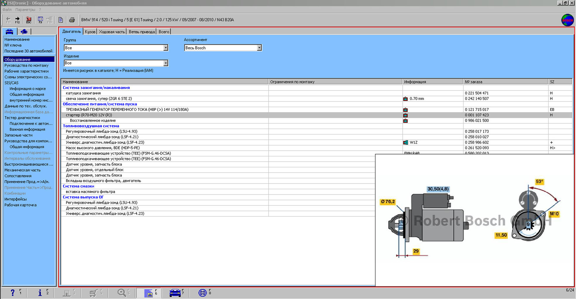 Каталог Bosch ESI поддерживает разные языки, в том числе и русский, имеет хороший интерфейс,