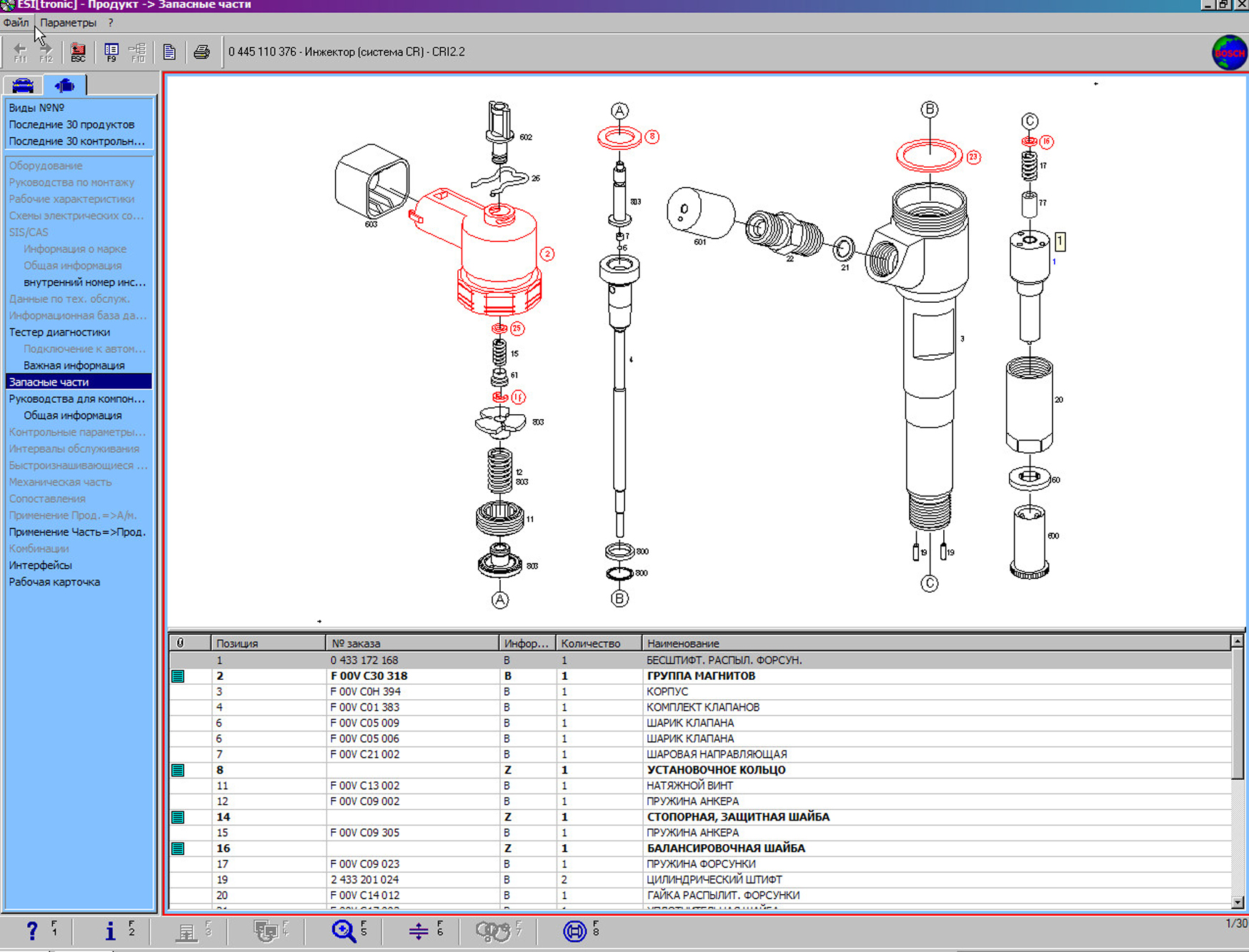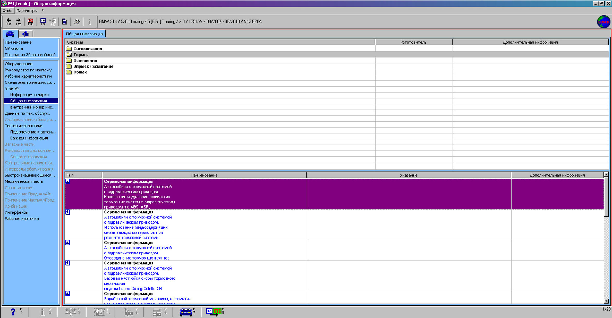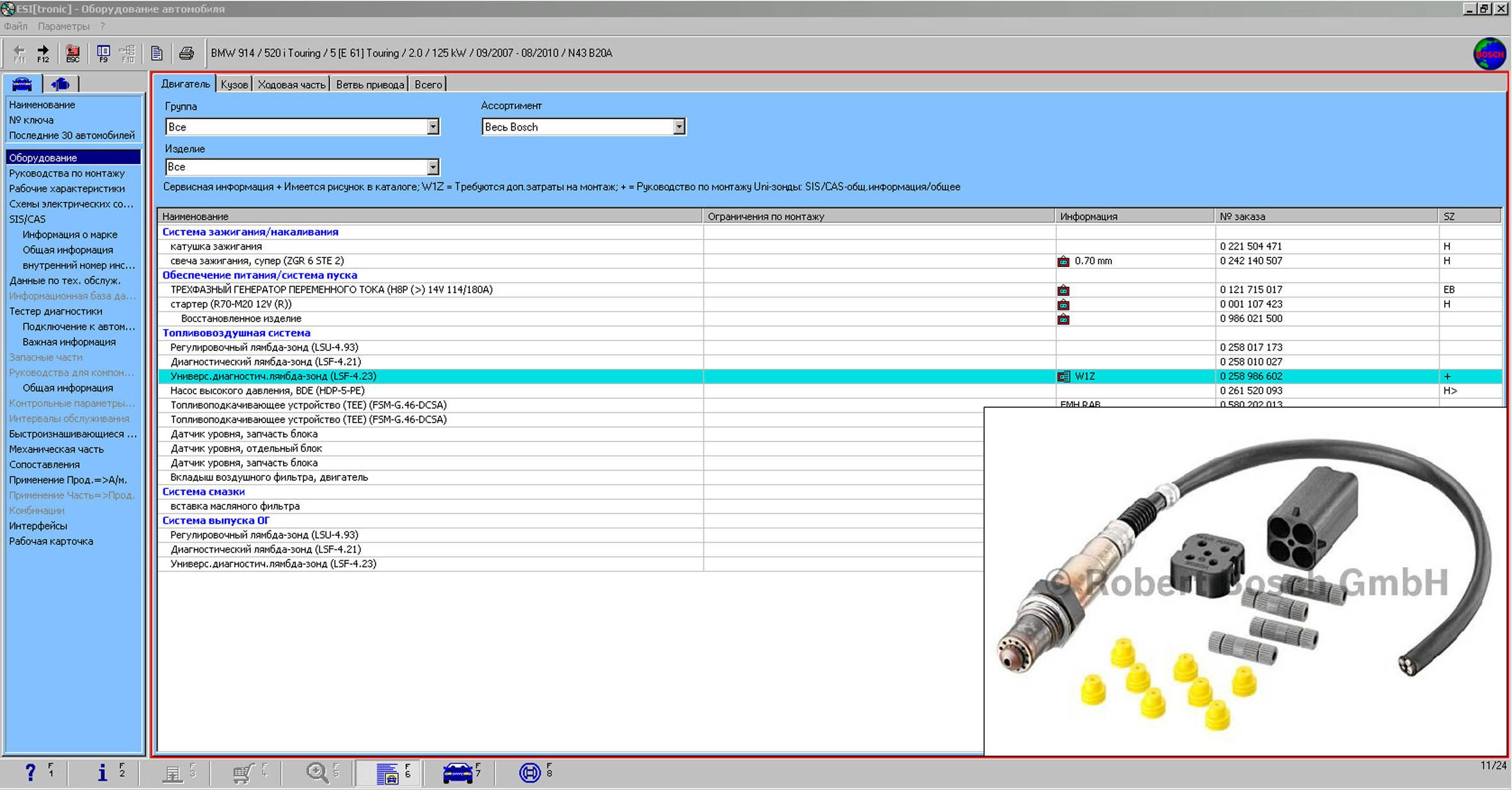 В данном каталоге Bosch ESI tronic содержится следующия информация;