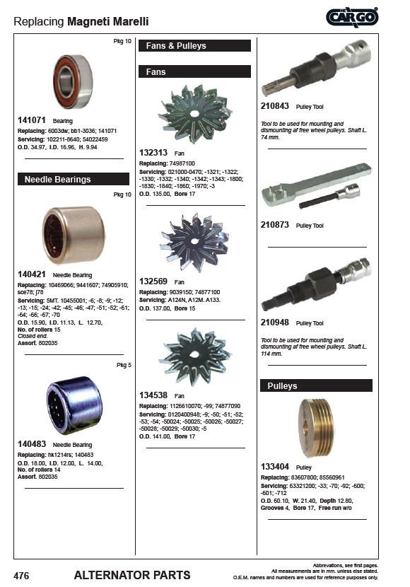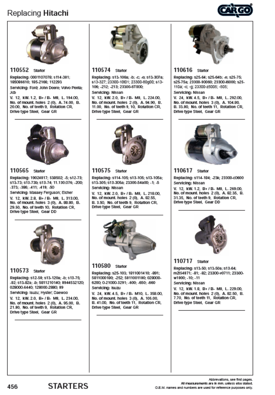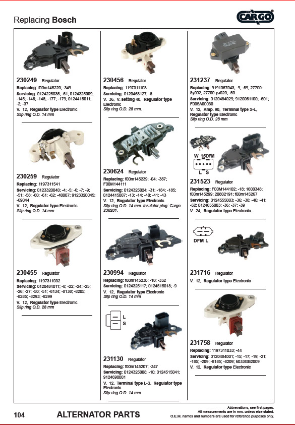 В каталоге Cargo представлены генераторы и стартеры;