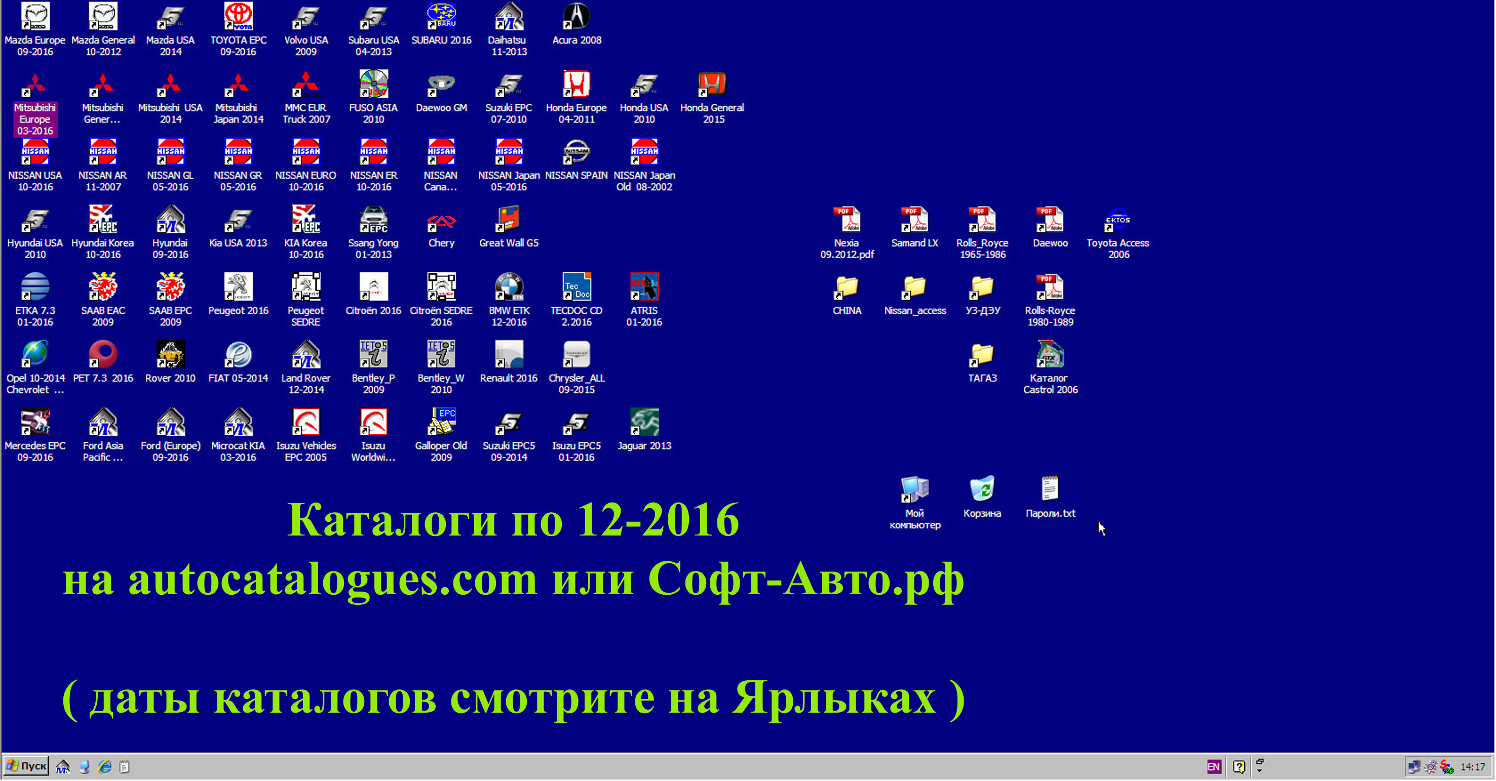 Комплект каталогов оригинальных запчастей по декабрь 2016 года ( даты каталогов смотрите на скриншоте )