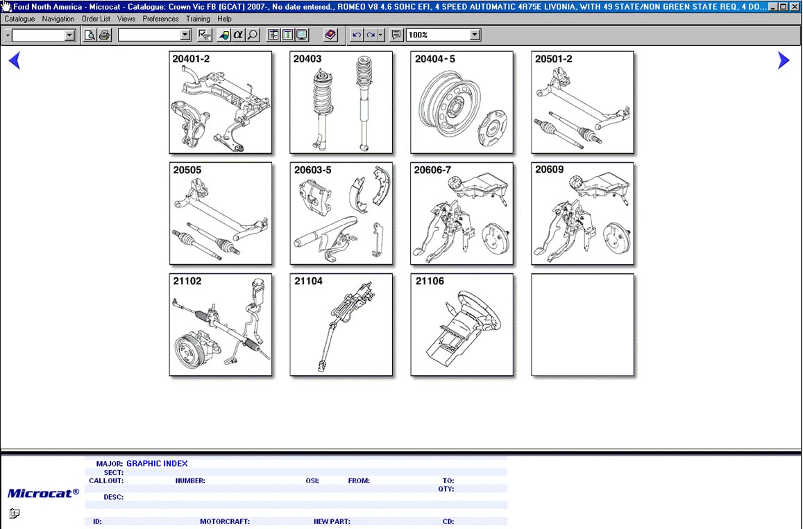 Microcat Ford USA - электронный каталог запчастей – это система идентификации и отправки заказов на запчасти и услуги, предназначенная для всех дилеров Ford.