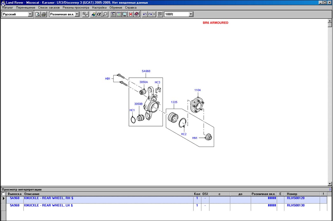 Интерфейс стандартный для оболочки Microcat и полностью аналогичен