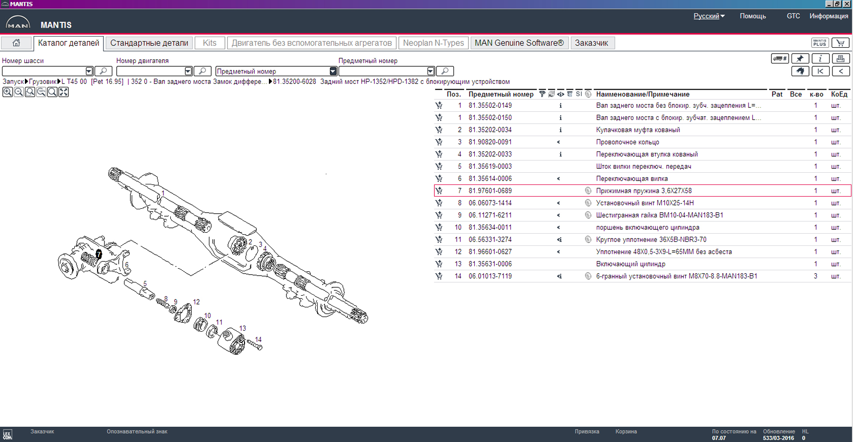 каталоге запчастей ман есть поиск по типам подвески, двигателя и др.