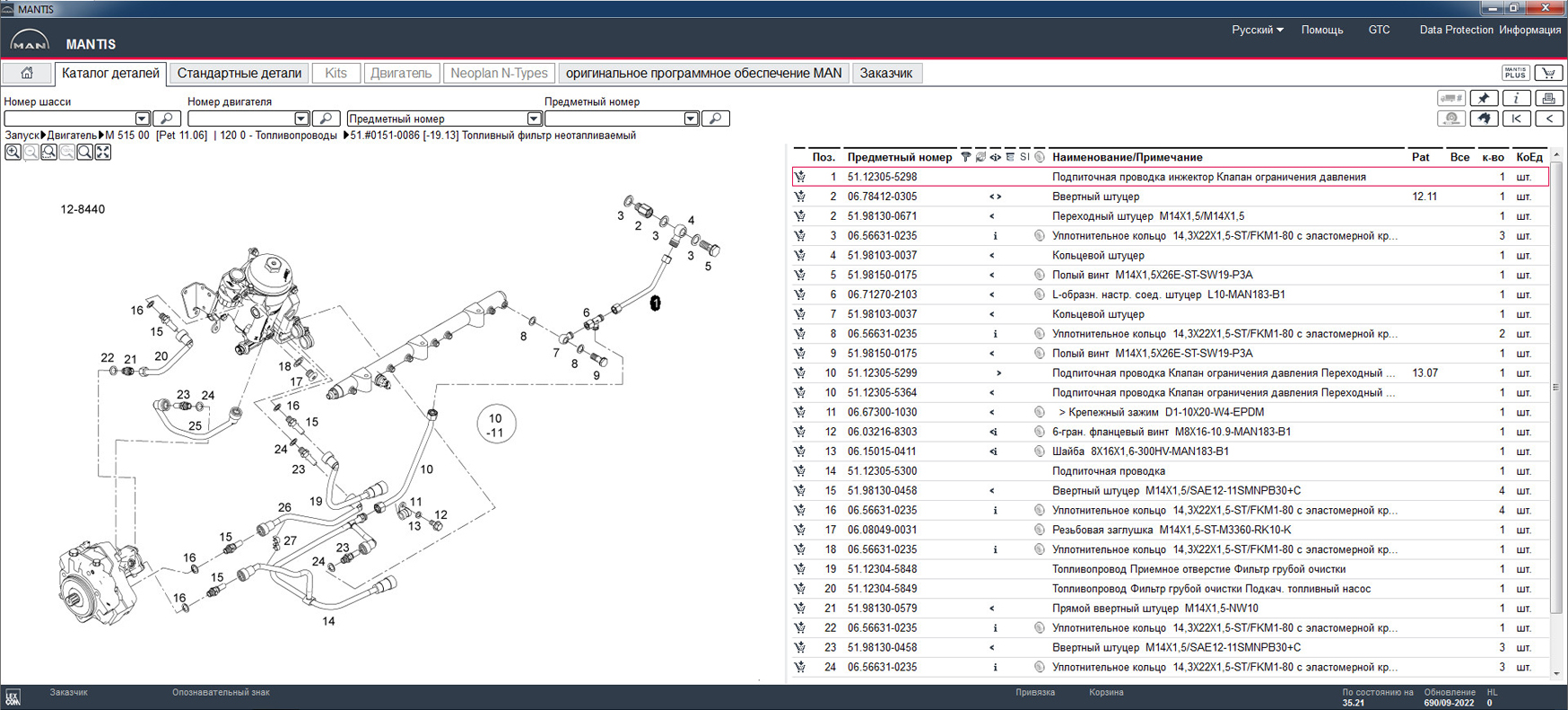 Цена каталога запчастей MAN MANTIS up 718 по 11-2023 - 8000 руб (на VMWARE)