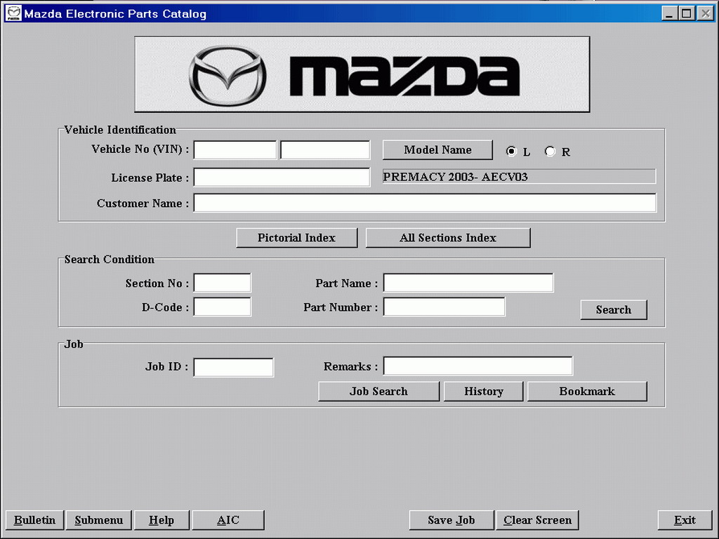 В каталог запчастей мазда имеется поиск по оригинальному номеру, названию деталей, есть история выбранных моделей и введённых Vin номеров, функция ведения Job-листов.