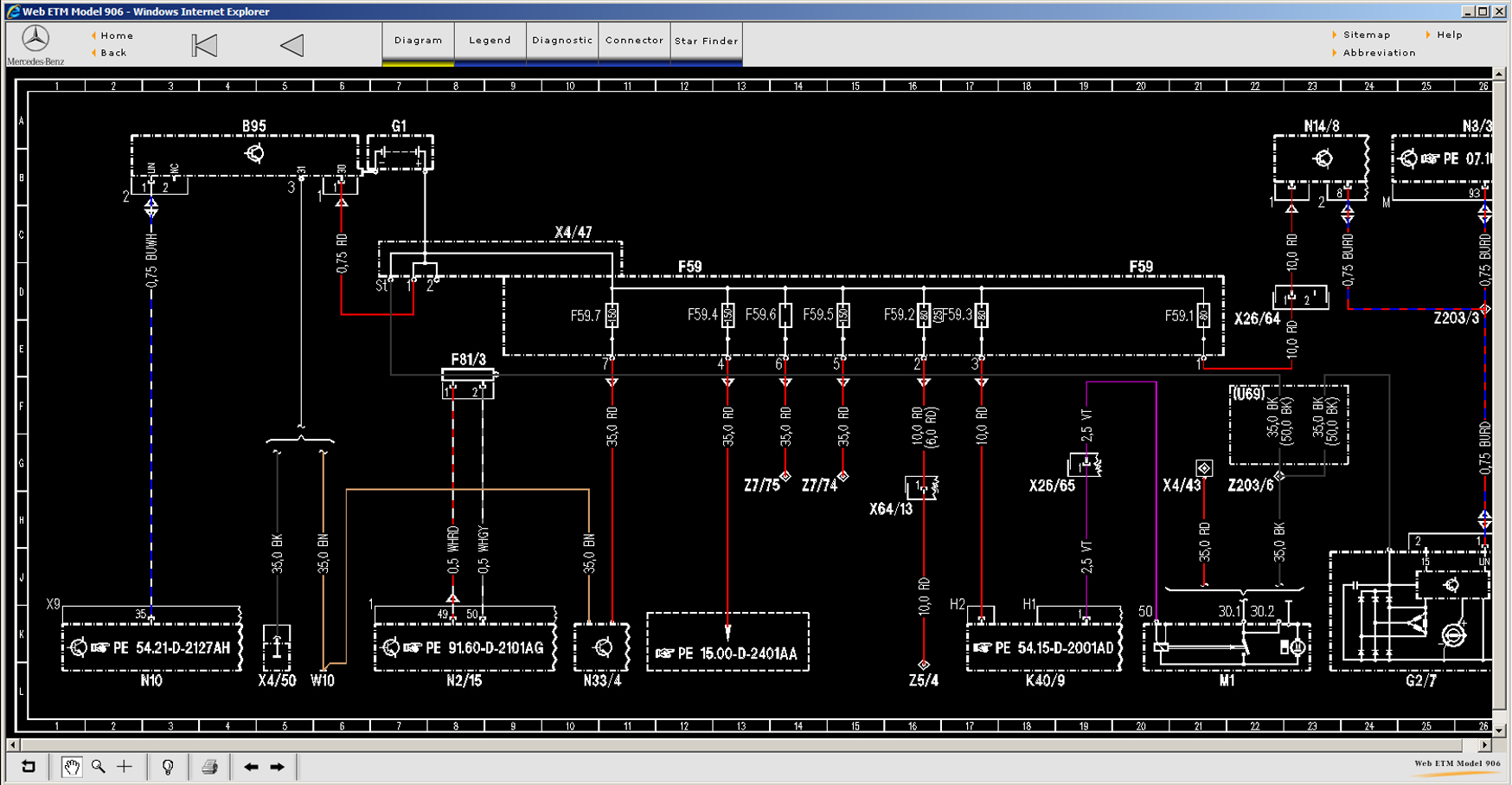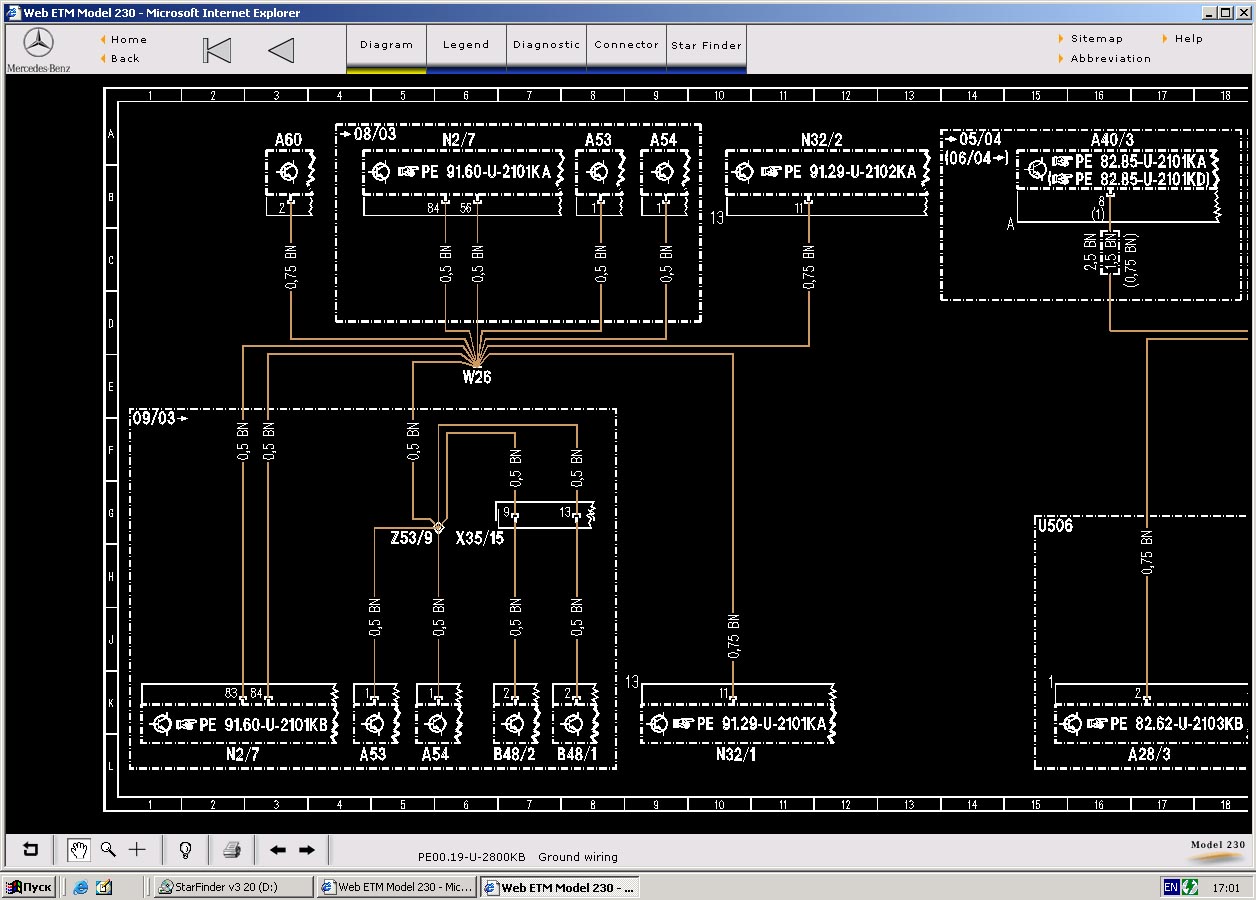 Mercedes StarFinder 01-2016 - руководство по электрике Мерседес, цветные электросхемы, распиновка разъемов, расположение электрических блоков, датчиков, коннекторов, электропроводки