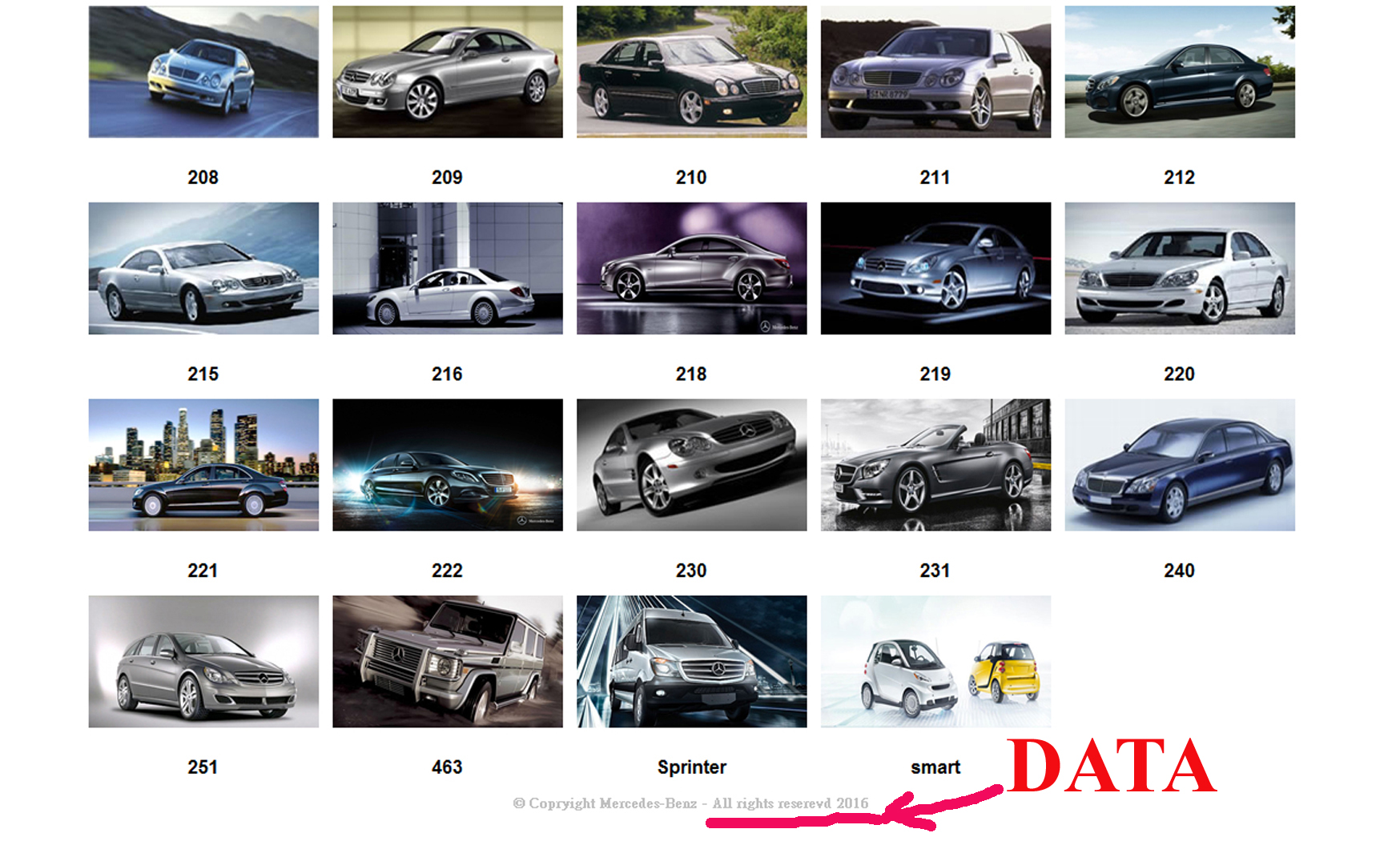 для следующих моделей: Мерседес-Бенц - 117, 129, 140, 163, 164, 166, 170, 171, 172, 197, 199, 202, 203, 204, 207, 208, 209, 210, 211, 212, 215, 220, 216, 218, 219, 221, 222, 230, 231, 240, 251, 463, Sprinter 904, 903, 906 и Smart.