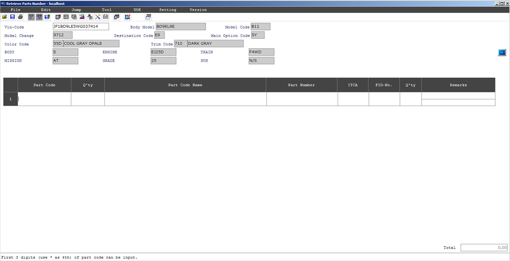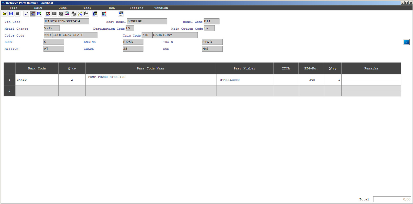 Для точного подбора запчастей каталоге SUBARU нужно иметь VIN и данные с таблички под капотом (Model, Option, Trim code, Engine type, Color code,...).