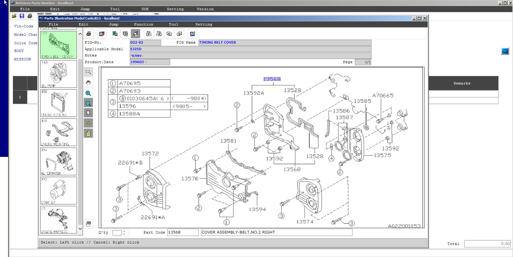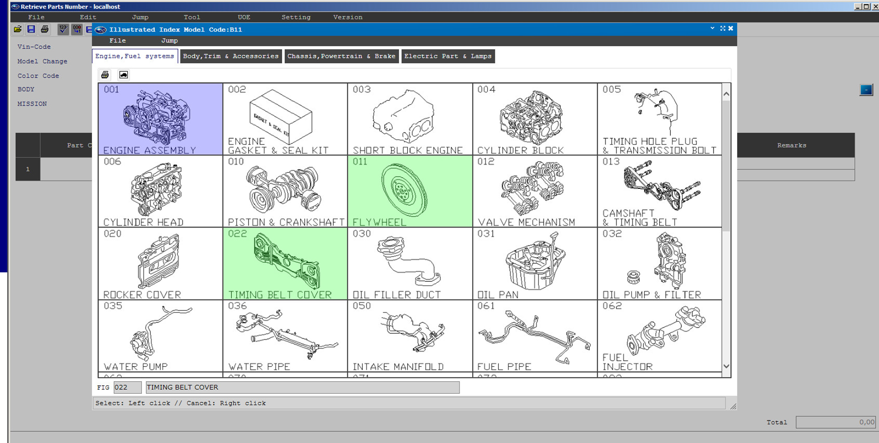 Пример работы с каталогом запчастей SUBARU (new interface):